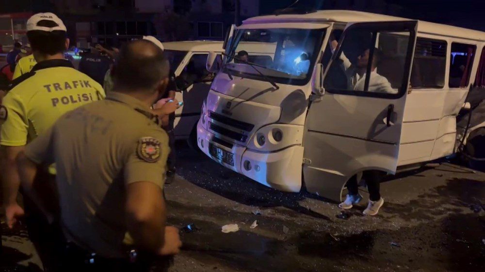 Antalya’nın Kepez ilçesi Habipler Mahallesi Muammer Aksoy Caddesi ile Adnan Kahveci Caddesi’nin kesişiminde saat 00.15 sıralarında düğünden döndükleri öğrenilen Ahmet E. (48) yönetimindeki minibüs ile Gökhan G.’nin kullandığı araba çarpıştı. Çarpışmanın tesiriyle minibüs geldiği istikamete aykırı dönerken araçta bulunan yolcular ise camlardan yola savruldu.