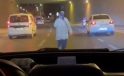 İstanbul’da iki ilginç olay: Akan trafiğe aldırış etmeden yolun ortasından yürüdüler
