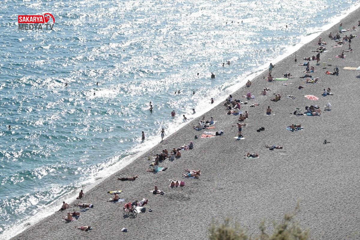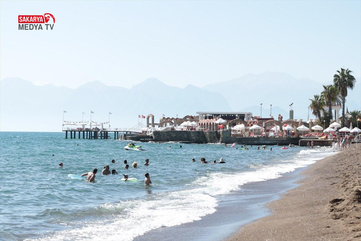 Sıcaktan bunalan kent sakinleri ile turistler, Konyaaltı ve Lara kıyılarında denize girip serinlemeye çalıştı.