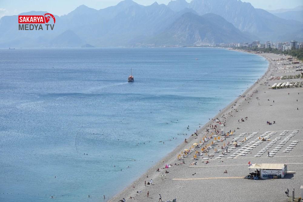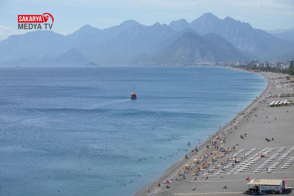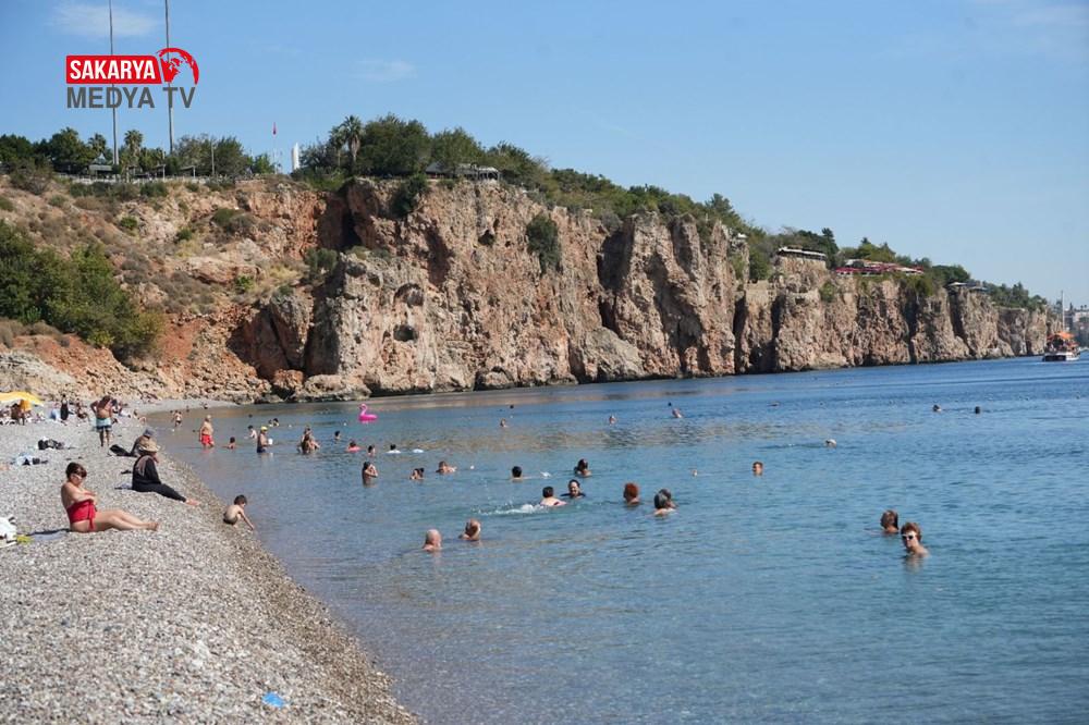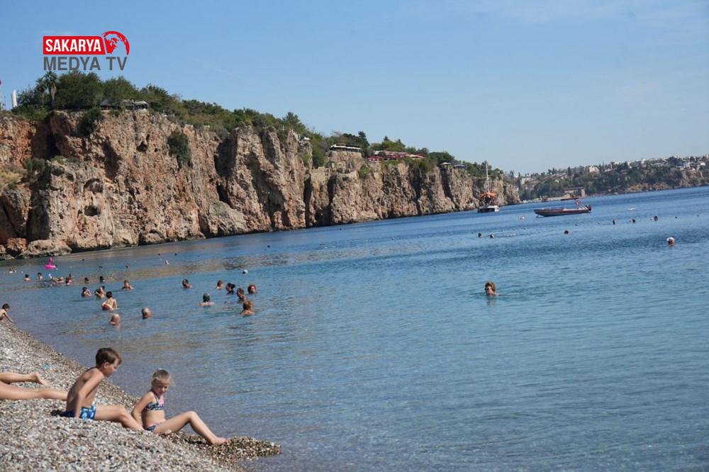 Güneşi gören turistler ve Antalya’da yaşayan vatandaşlar, havanın ısınmasının tadını Konyaaltı Kıyısı’nda denize girerek çıkarttı.