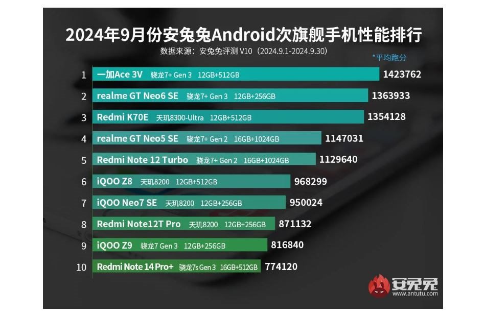AnTuTu Benchmark, Eylül 2024’ün en iyi performans gösteren amiral gemisi katili akıllı telefonlarını açıkladı. Liste, son birkaç aydır büyük ölçüde sabit kalmış durumda ve ilk üçte yine OnePlus Ace V3, Realme GT Neo 6 SE ve Redmi K70E yer alıyor. Bu cihazlar, üstün performanslarıyla dikkat çekmeye devam ediyor.