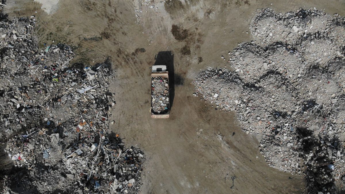 Hatay’da enkaz döküm kamyonlarının trafiği yıkımın boyutunu gösteriyor
