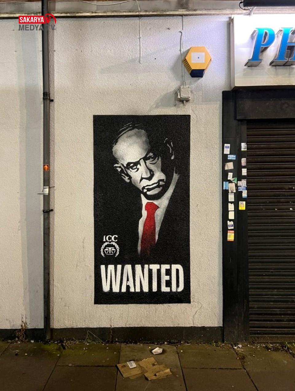“Wanted” (Aranyor) ifadesi yer alan Netanyahu afişleri, İngiltere sokaklarındaki duvarlara asıldı.