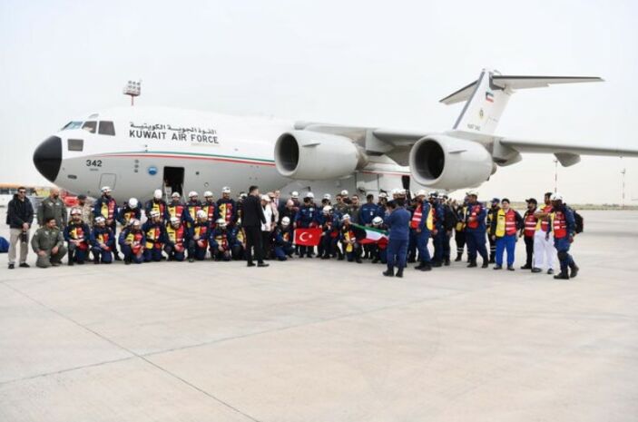Deprem felaketinin ardından Kuveyt de devlet, sivil toplum kuruluşları (STK), hayır kurumları, özel şirketler ve vatandaşları aracılığıyla insani yardım faaliyetleri yürüttü. Kuveyt, depremin ardından Türkiye’ye destek için sağlık görevlileri dahil 46 kişilik bir ekip gönderdi. Emir Şeyh Nevvaf el-Ahmed el-Cabir es-Sabah’ın talimatıyla, arama-kurtarma ve tıbbi ekip, sağlık malzemesi ile afet sonrası ihtiyaçların hızlı ve etkin bir şekilde nakli için Türkiye ile Kuveyt arasında hava köprüsü oluşturuldu. Bu kapsamda Türkiye’ye bugüne dek çadır, battaniye ve tıbbi malzemeler içeren 13 uçakla yardım malzemesi ulaştırıldı. Ayrıca Kuveyt’ten çadır, konteyner, elektrikli ev aletleri gibi yardım malzemesi taşıyan 23’ten fazla tır gönderildi. Kuveyt Sosyal İşler Bakanlığının Türkiye ve Suriye’deki deprem bölgeleri için “Kuveyt yanınızda” temasıyla 11 Şubat’ta düzenlediği, canlı yayımlanan bağış programında, 129 bini aşkın kişi ve kuruluşun desteğiyle 67 milyon doların üzerinde yardım toplandı.