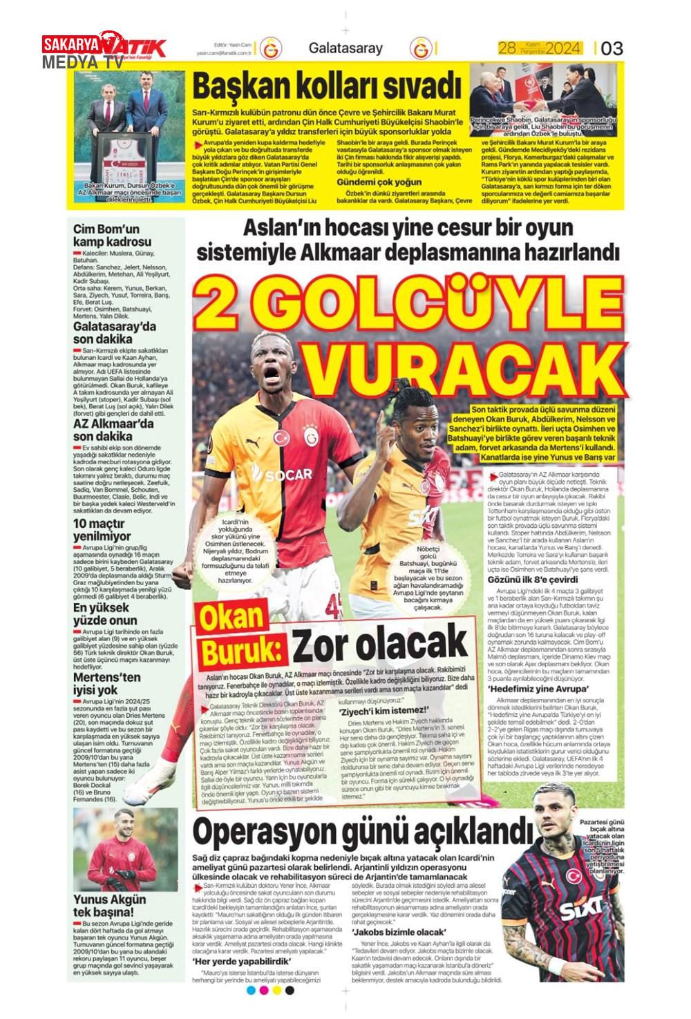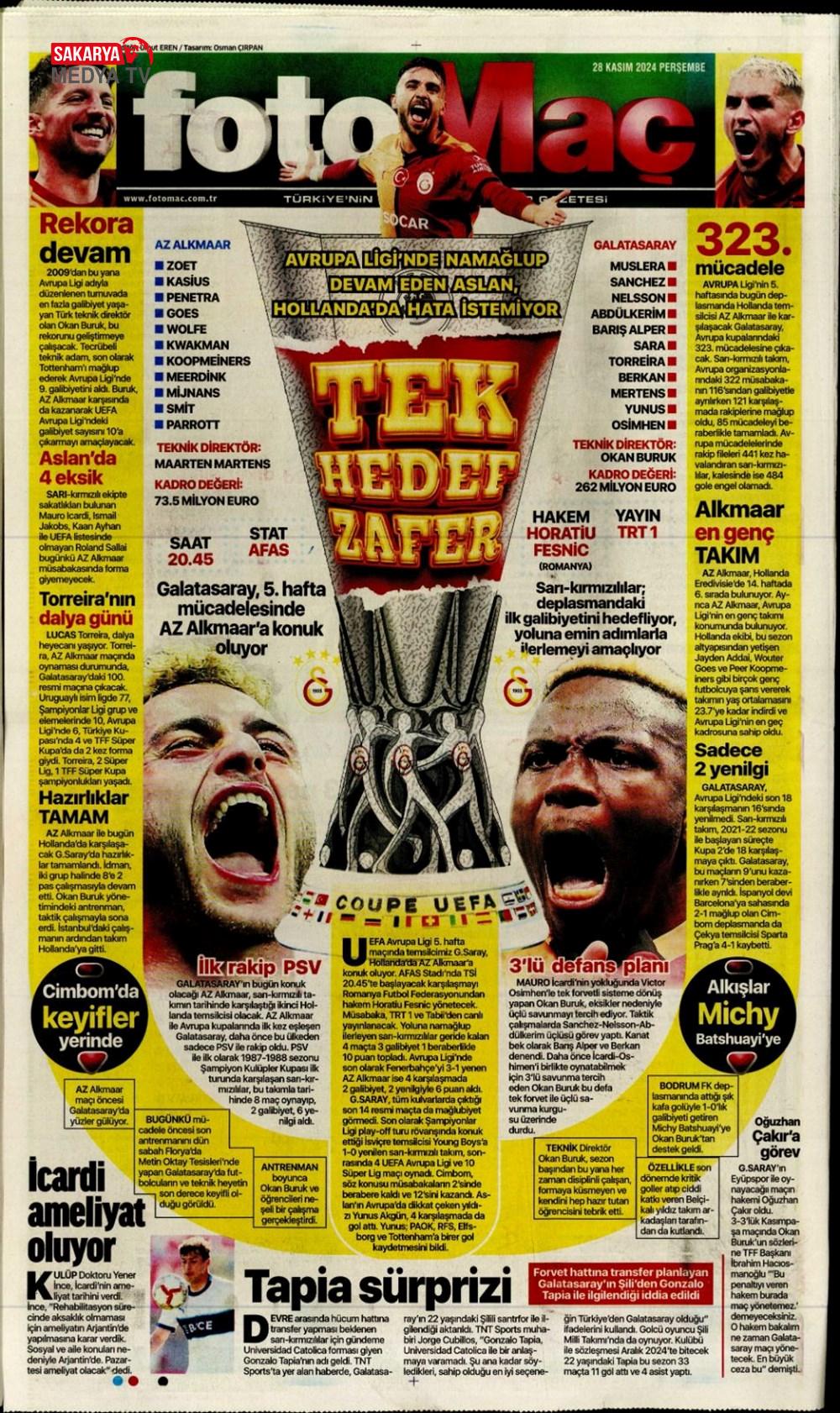 UEFA Avrupa Ligi | Galatasaray, AZ Alkmaar’a konuk oluyor: Muhtemel 11