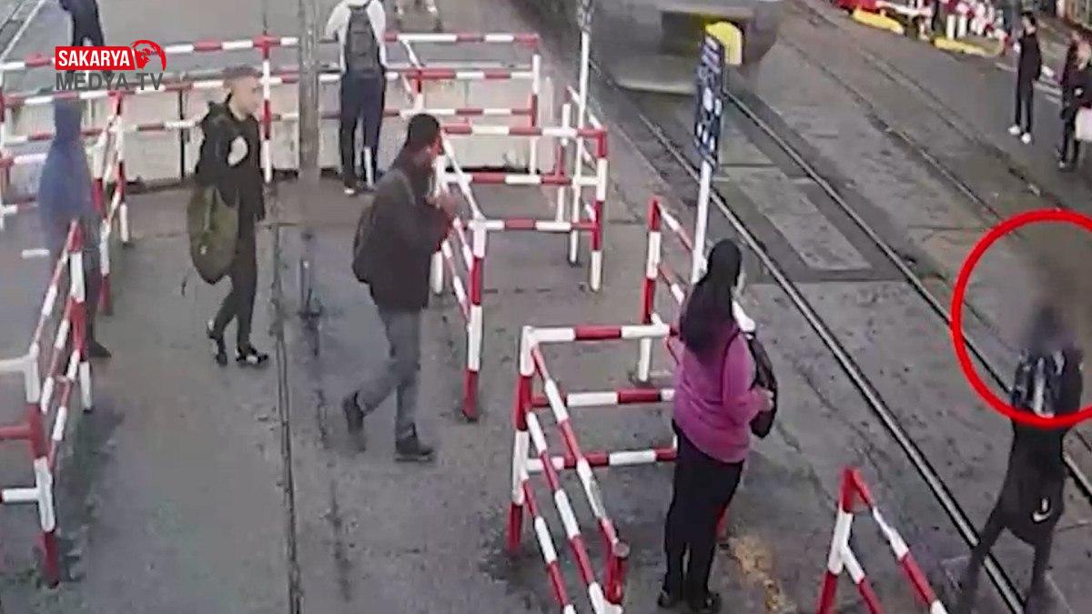 Şahıs o anlarda gelen tramvayın altında az daha kalıyordu.