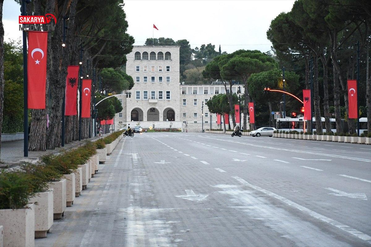 Cumhurbaşkanı Erdoğan’ın Arnavutluk ziyaretinde kullanacağı güzergaha ve Tiran’ın merkezindeki “Rahibe Teresa” meydanına iki ülkenin bayrakları asıldı.