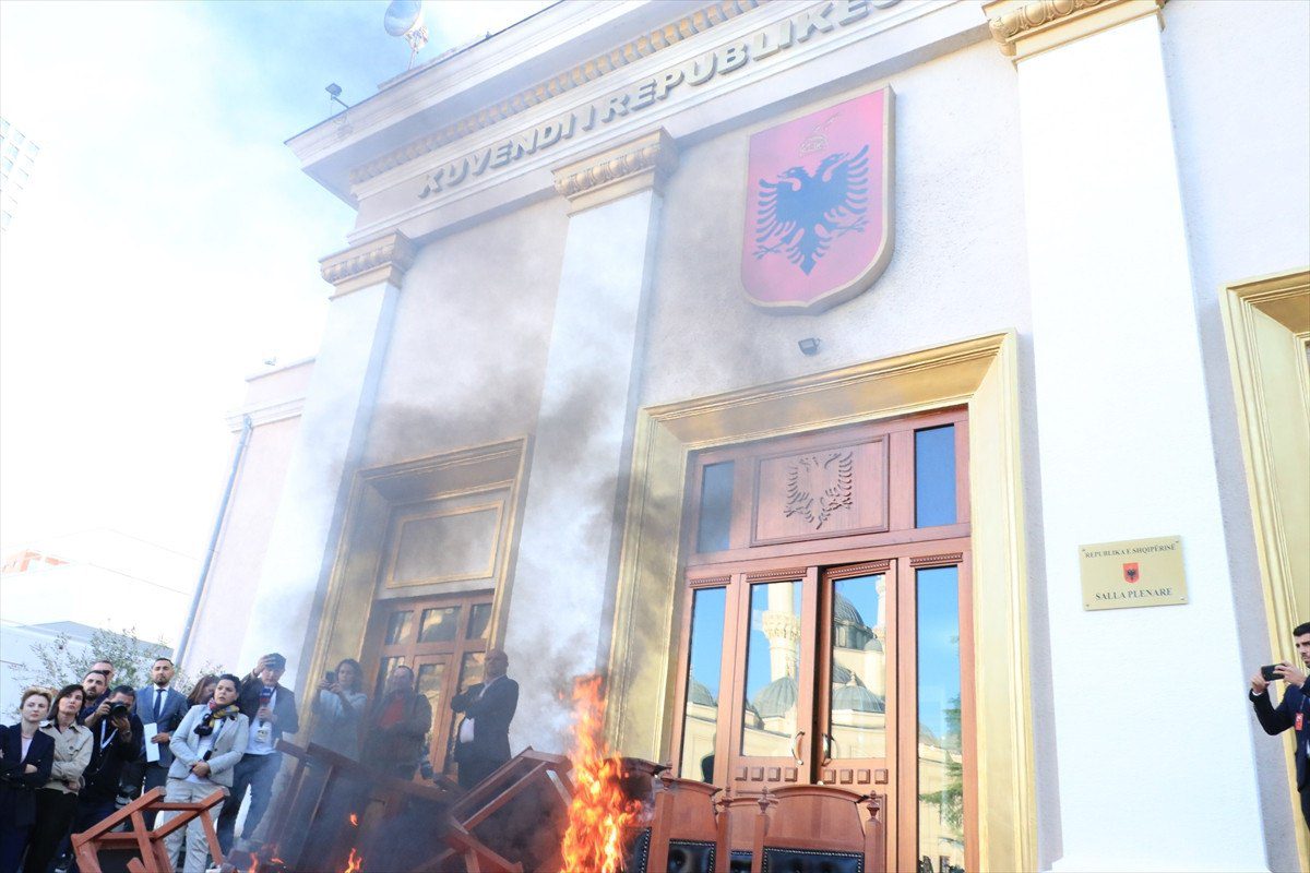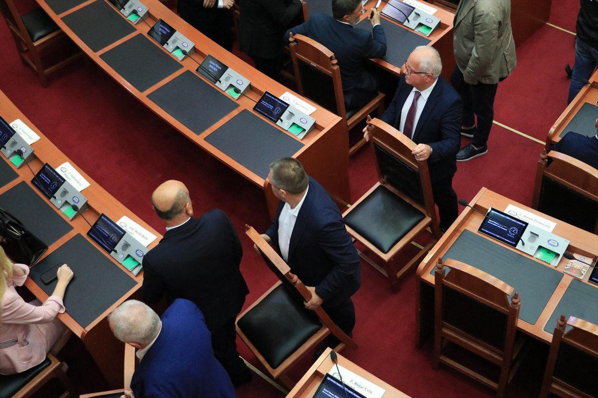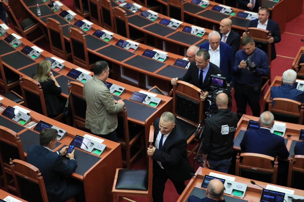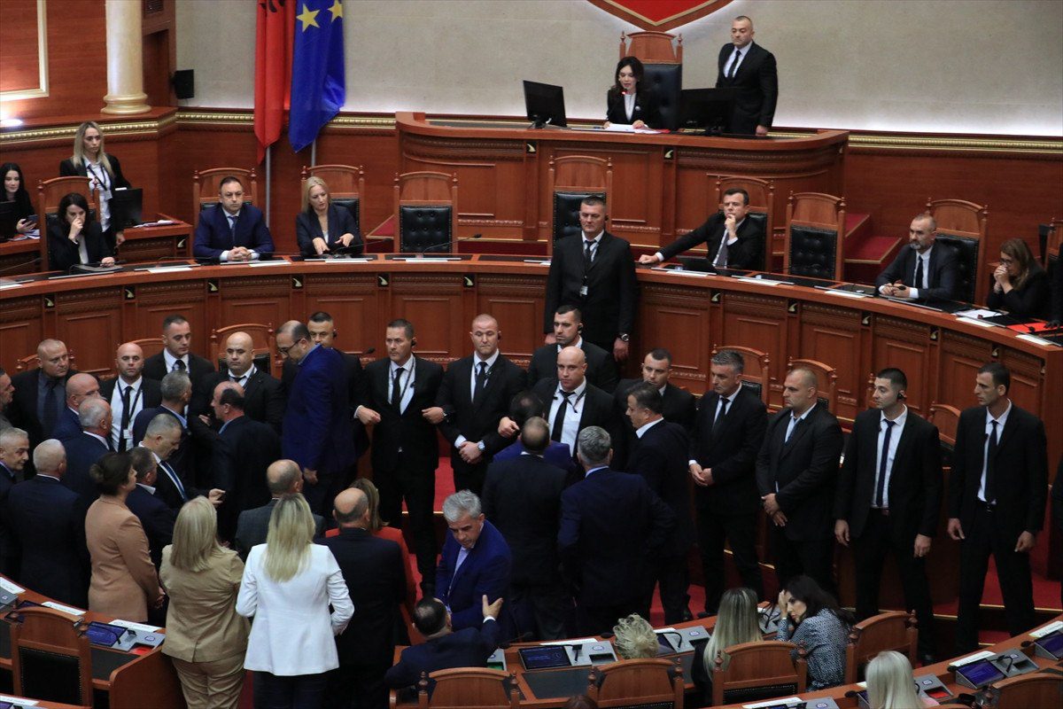 AA Arnavutluk Meclisi yeniden hararetli bir hengameye sahne oldu.. Meclis’teki gerginlik, birinci olarak genel konsey salonunda yapılan oturum esnasında ana muhalefet partisi Arnavutluk Demokratik Partisi (PD) milletvekillerinin, PD Milletvekili Ervin Salianji’nin mahpus cezası almasına reaksiyon göstererek kürsüye çıkışları engellemesiyle başladı. Salonda bulunan birtakım teçhizata da ziyan veren muhalefet milletvekilleri, Meclis Başkanı Elisa Spiropali’ye yabancı unsur fırlattı.