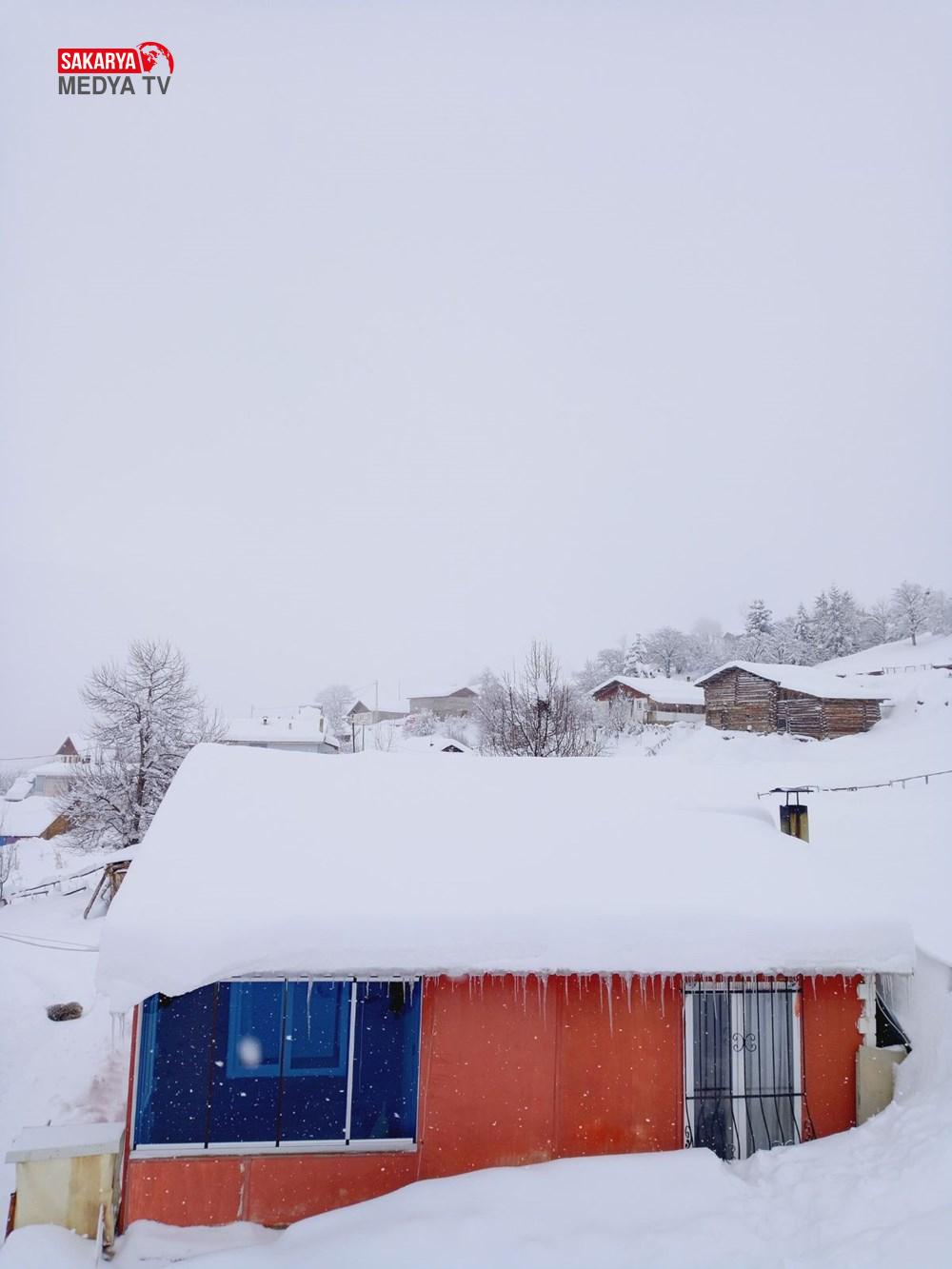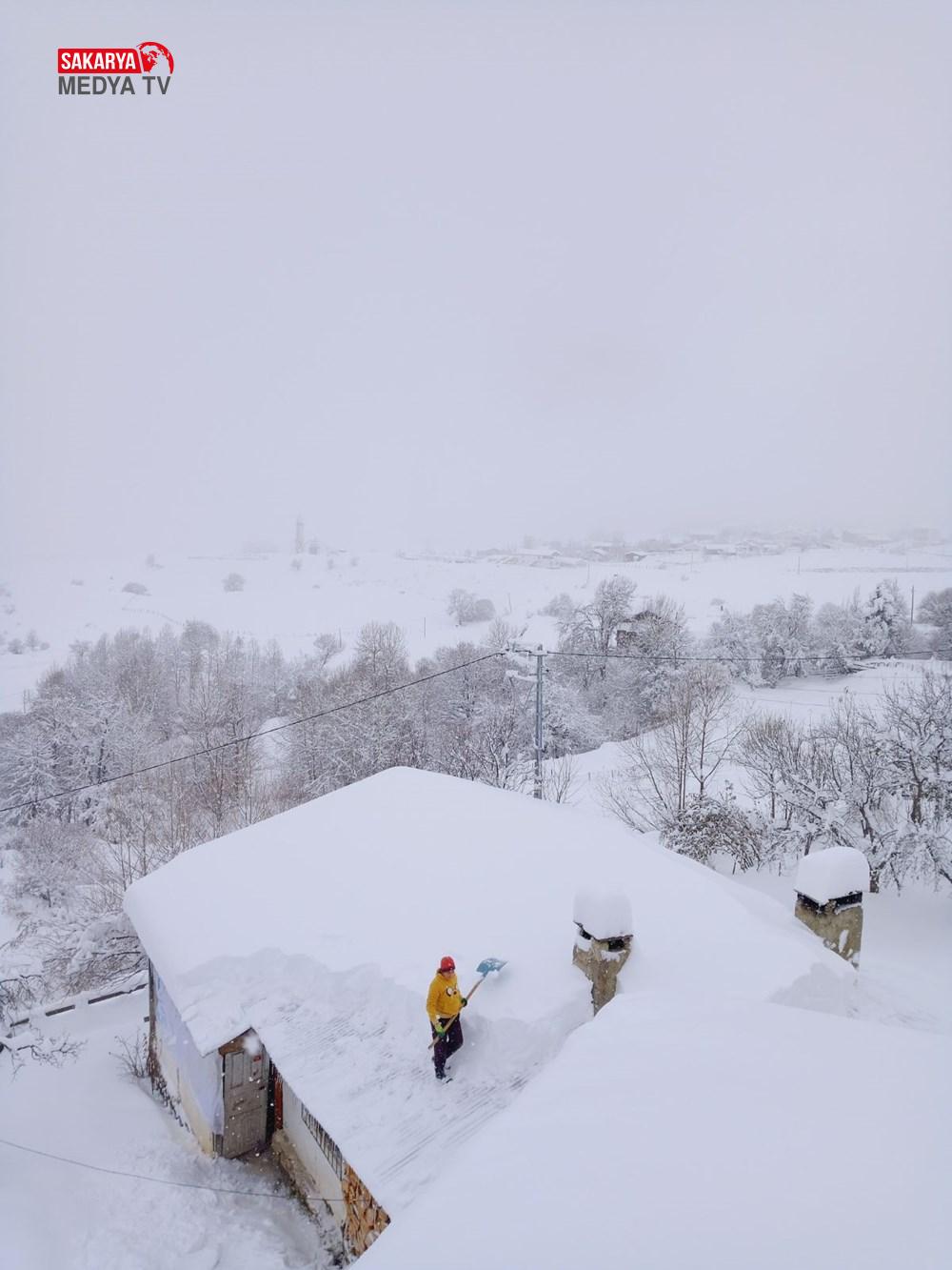 Köy sakinleri, çatılarda biriken karı temizleyerek muhtemel bir çökme tehlikesini önlemeye çalışıyor.