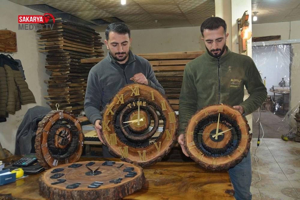 Kütüklerden arta kalan kolları duvar saati, orta sehpalı saat, doğrama tahtası, küllükler ve bardaklara dönüştürdüklerini vurgulayan Polat, yaklaşık 500-600 yıllık olan ve randımandan düşen ceviz ağaçlarını, hayal güçlerini kullanarak değişik eserlere çevirdiklerini belirtti.