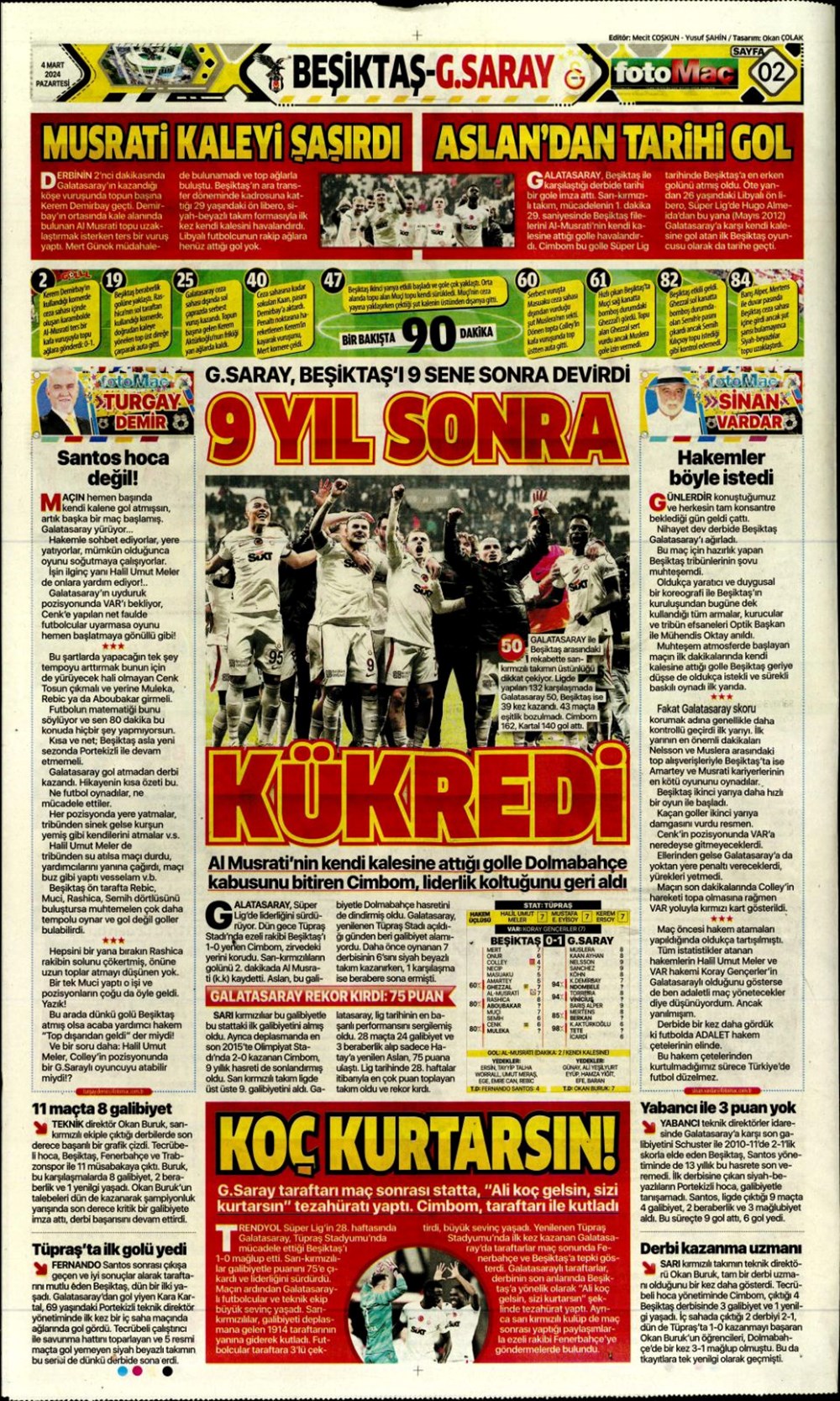 “Fenerbahçe’de Roberto Firmino bombası” (9 Şubat 2025 spor manşetleri)