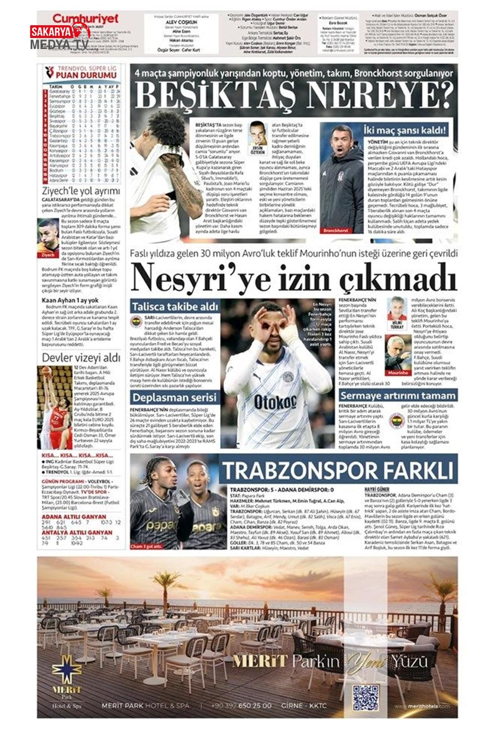 “Fenerbahçe’de Roberto Firmino bombası” (9 Şubat 2025 spor manşetleri)