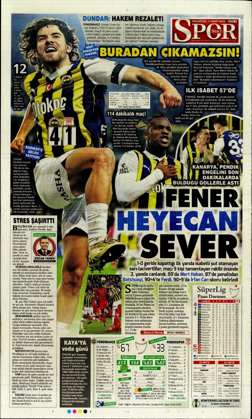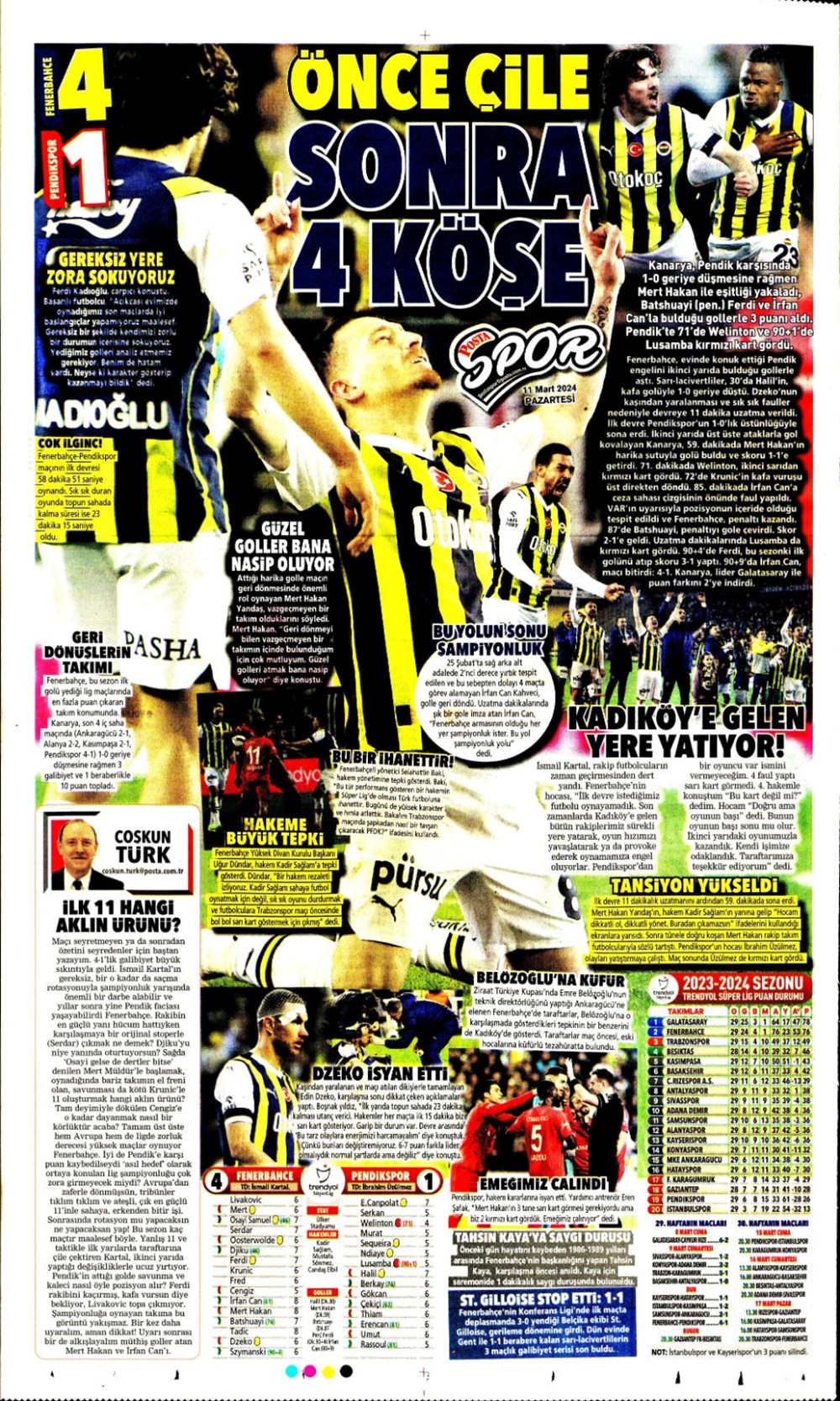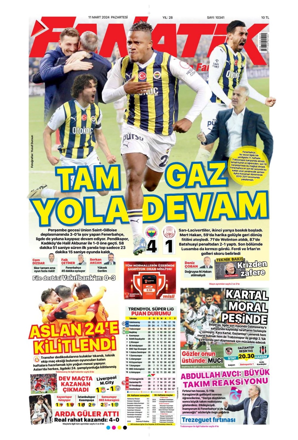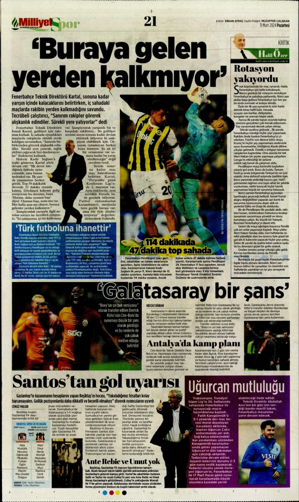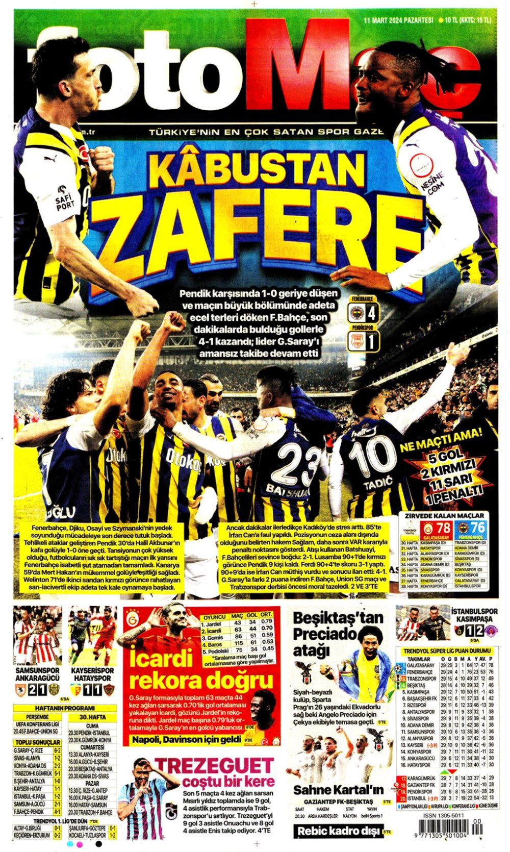 Fenerbahçe hata istemiyor (10 Mart 2024 spor manşetleri)