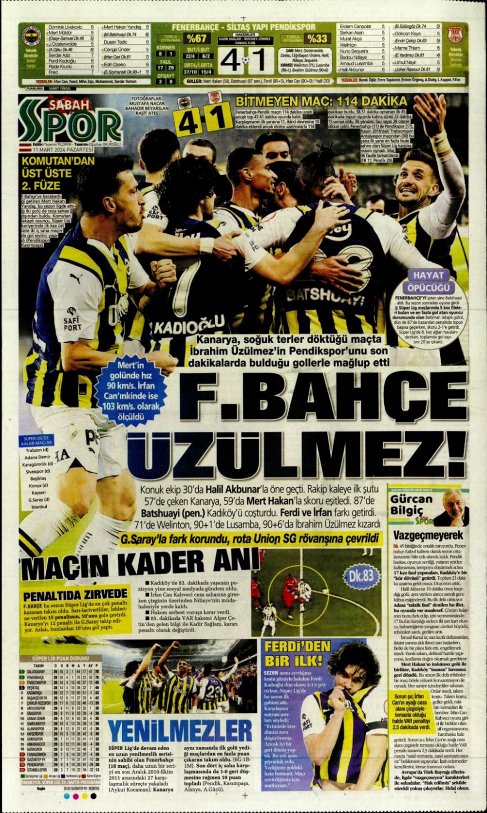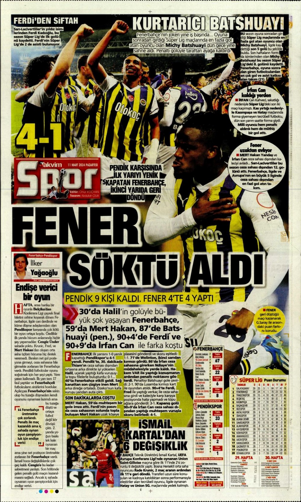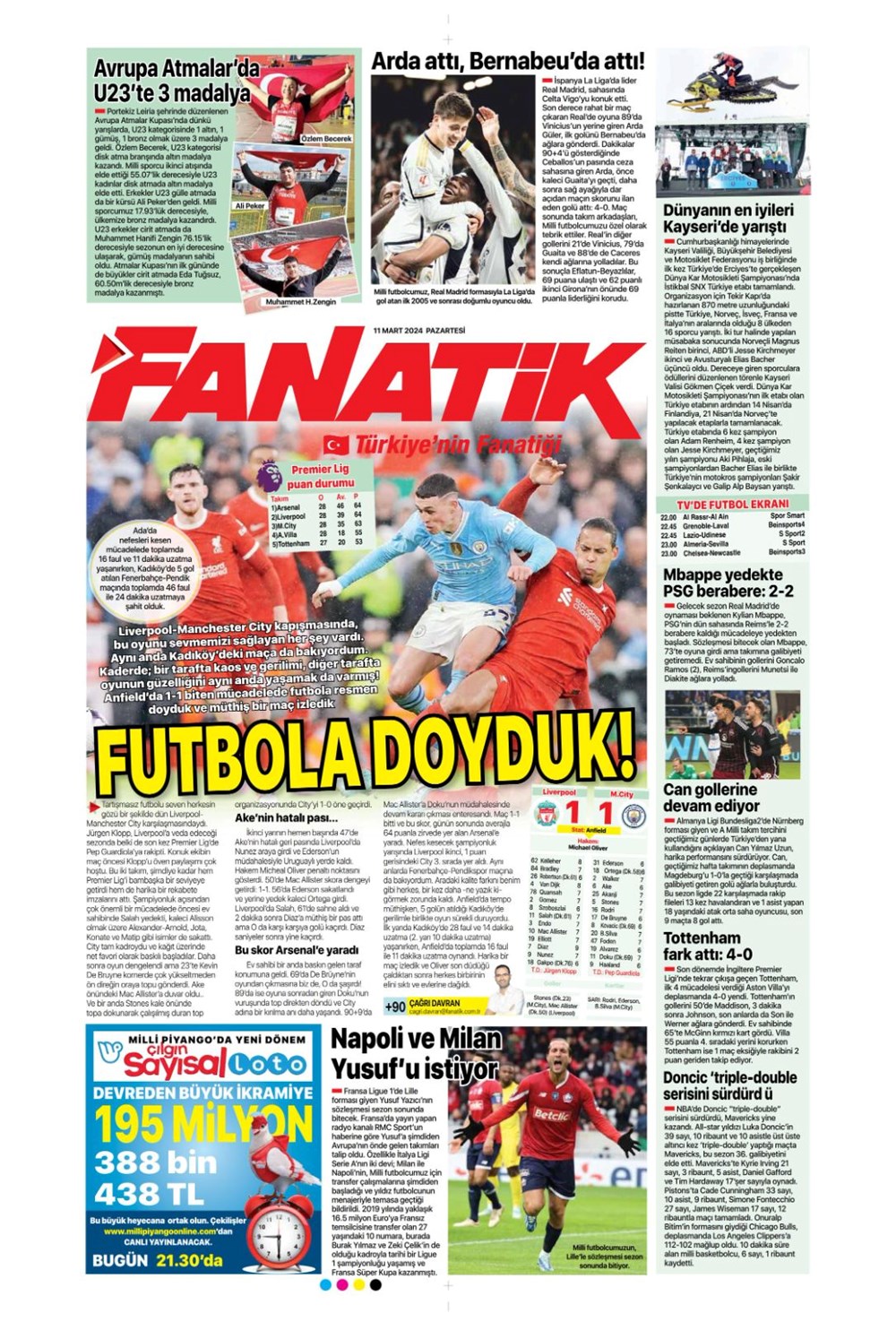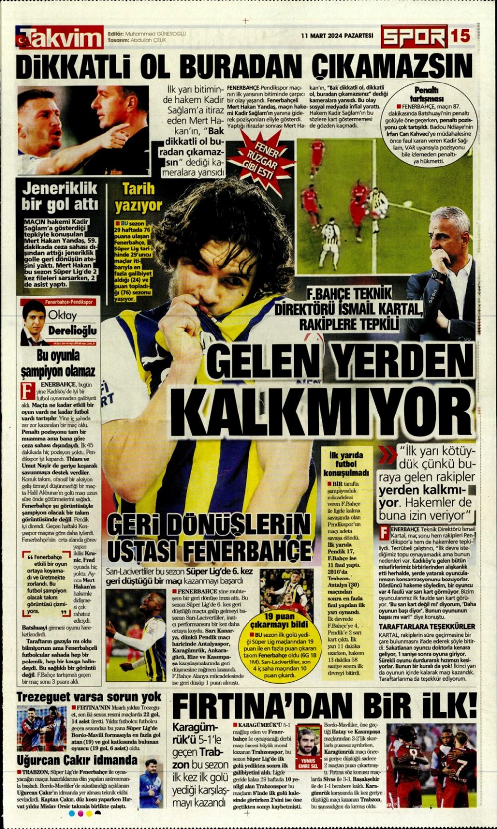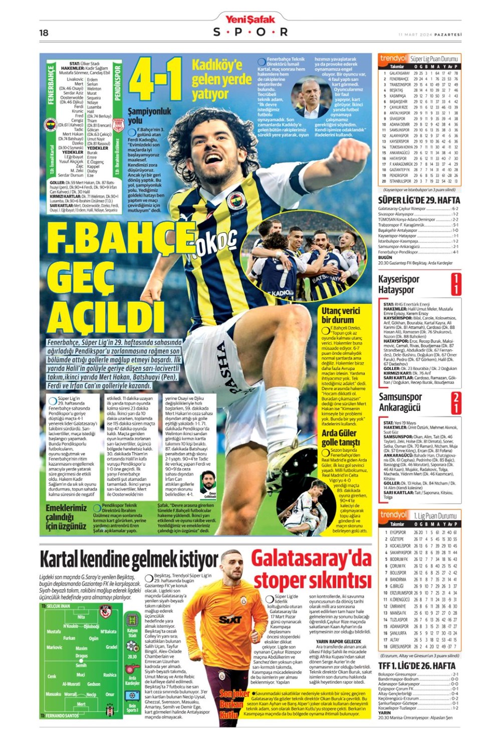 Fenerbahçe hata istemiyor (10 Mart 2024 spor manşetleri)