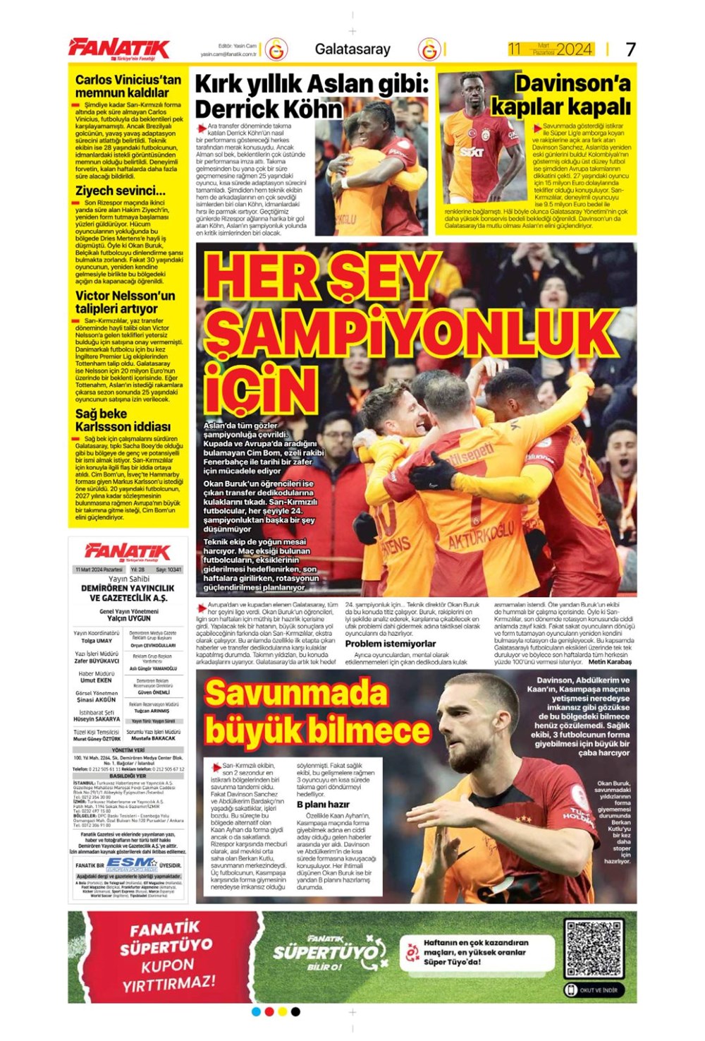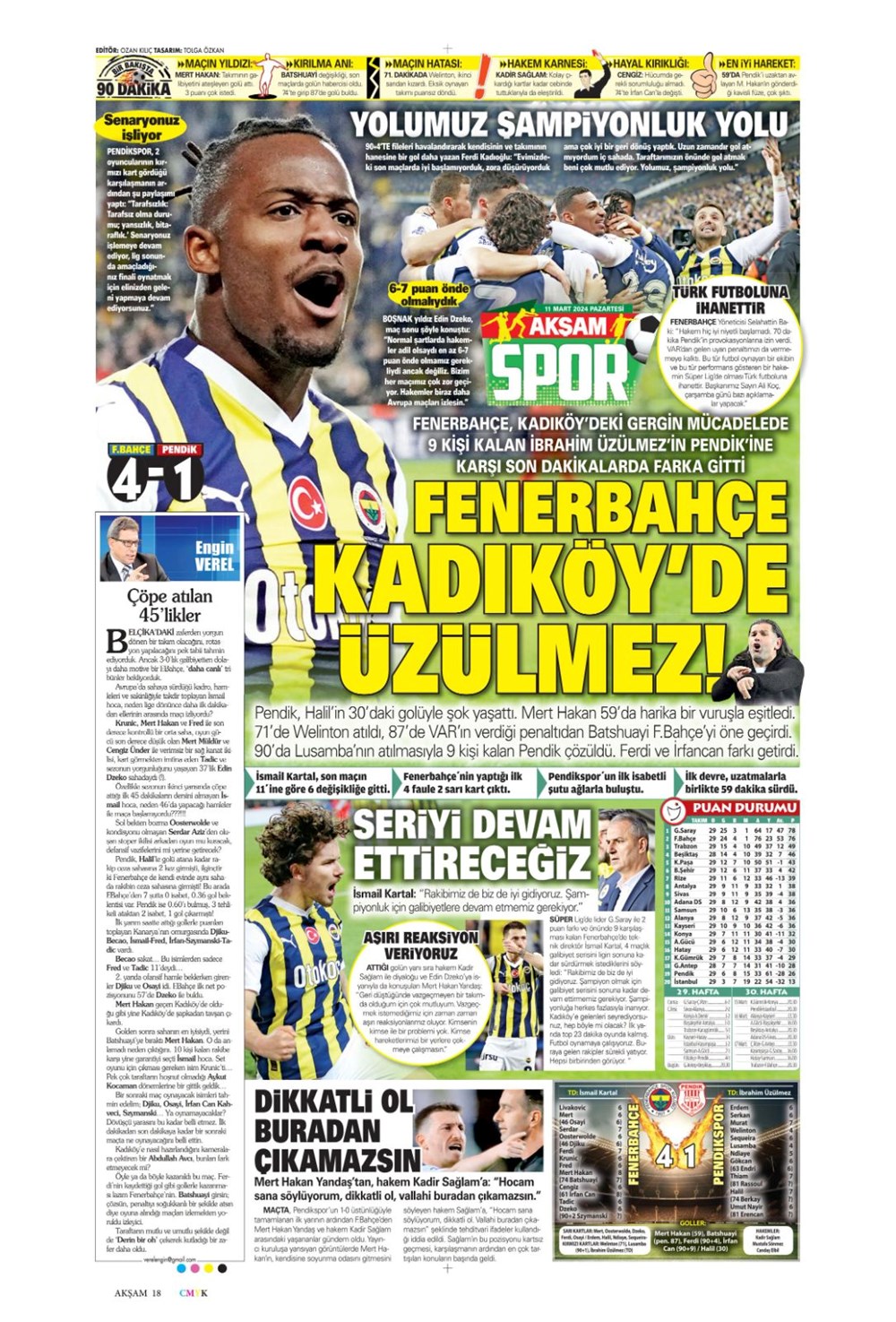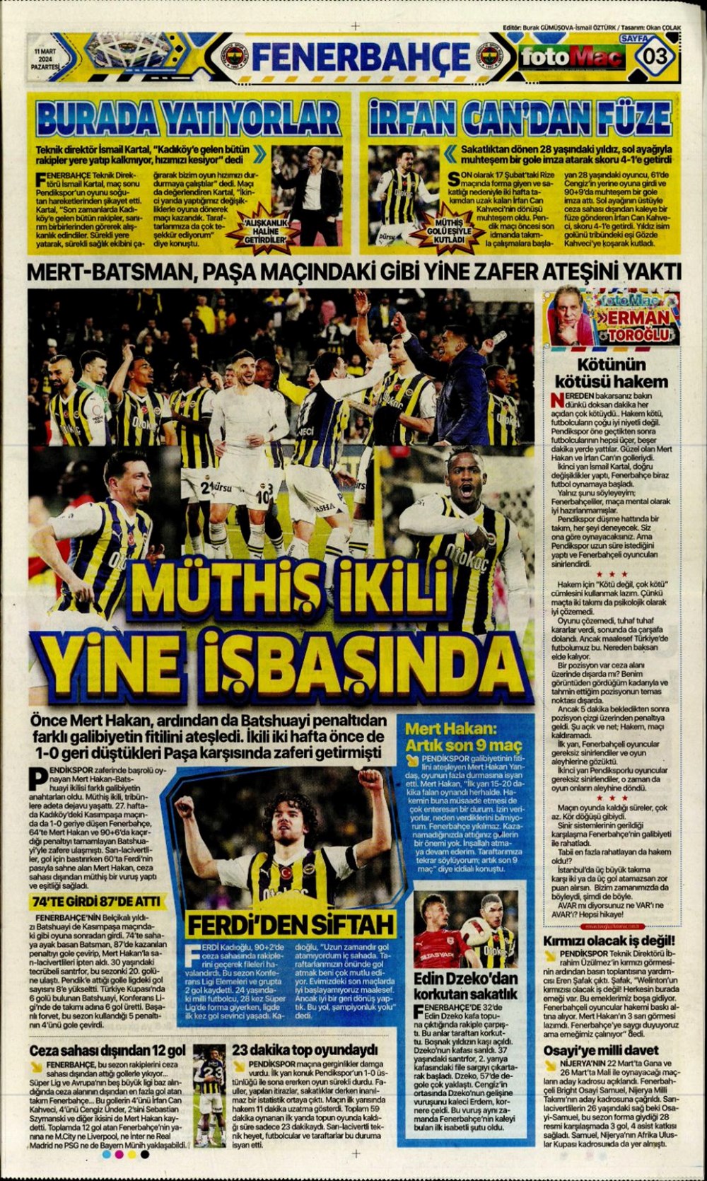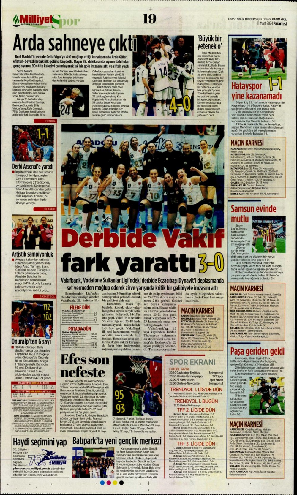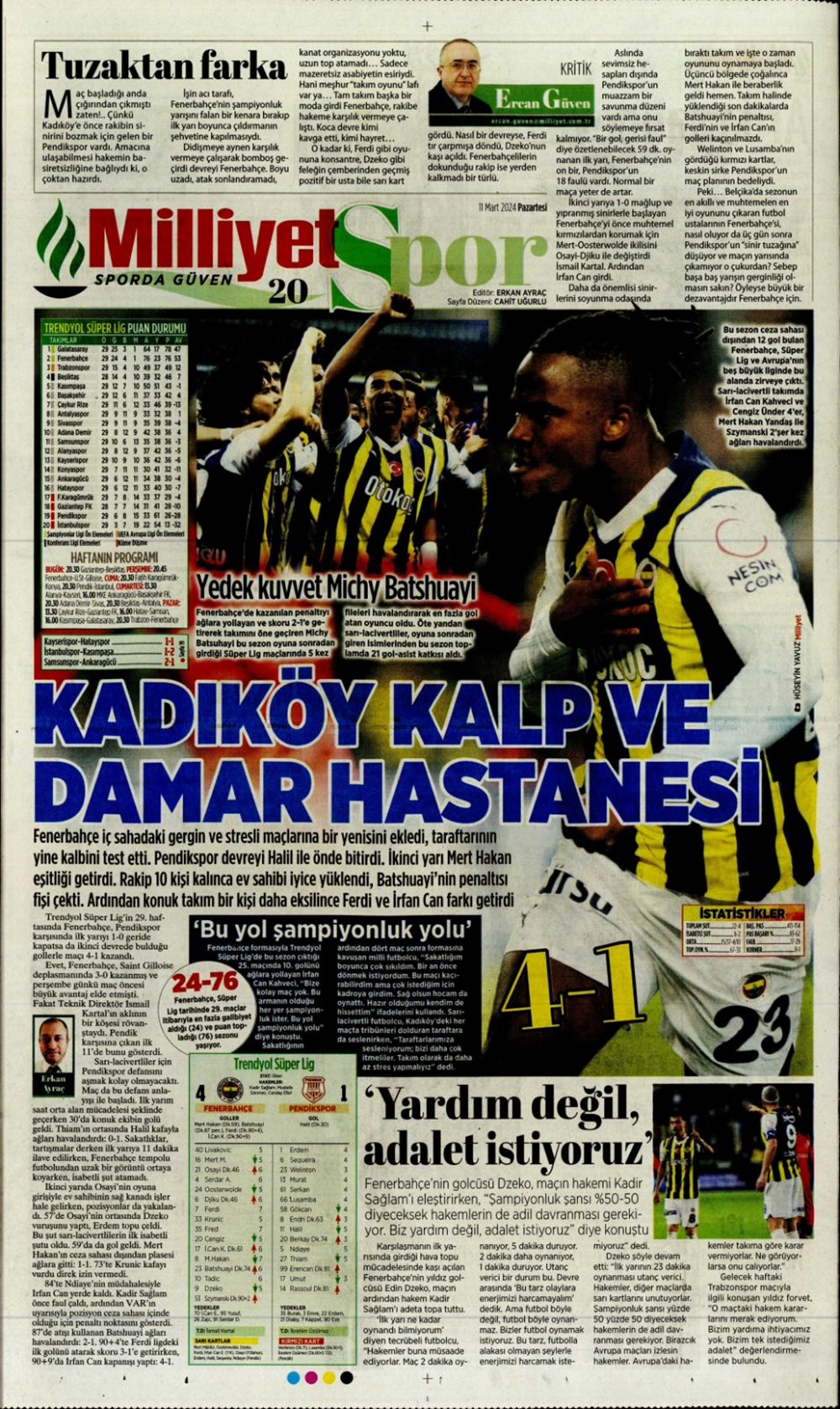 Fenerbahçe hata istemiyor (10 Mart 2024 spor manşetleri)