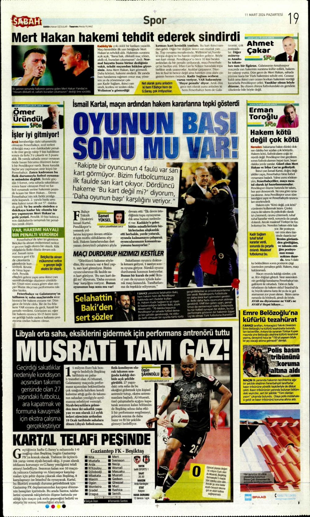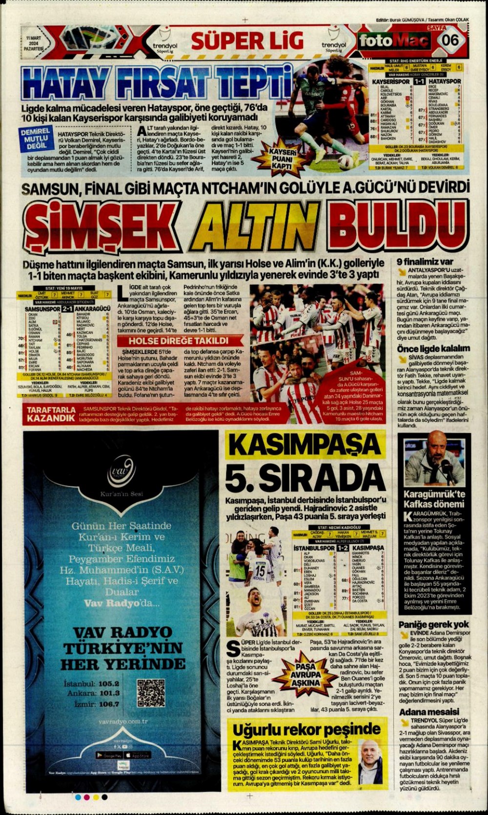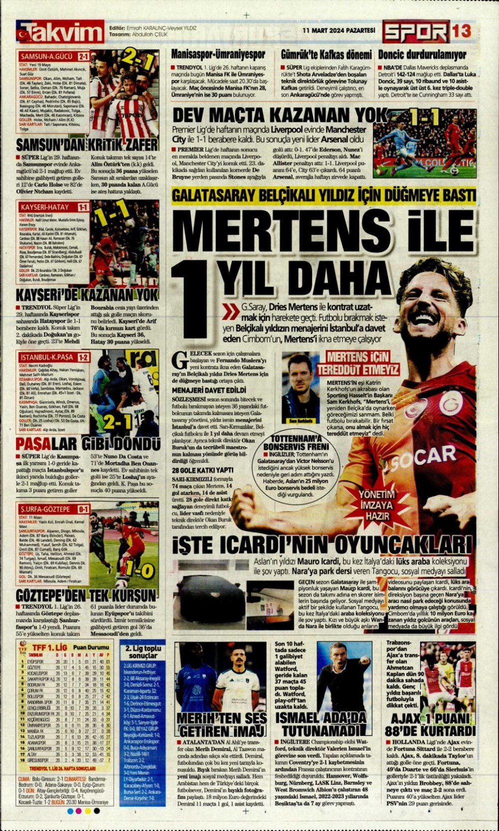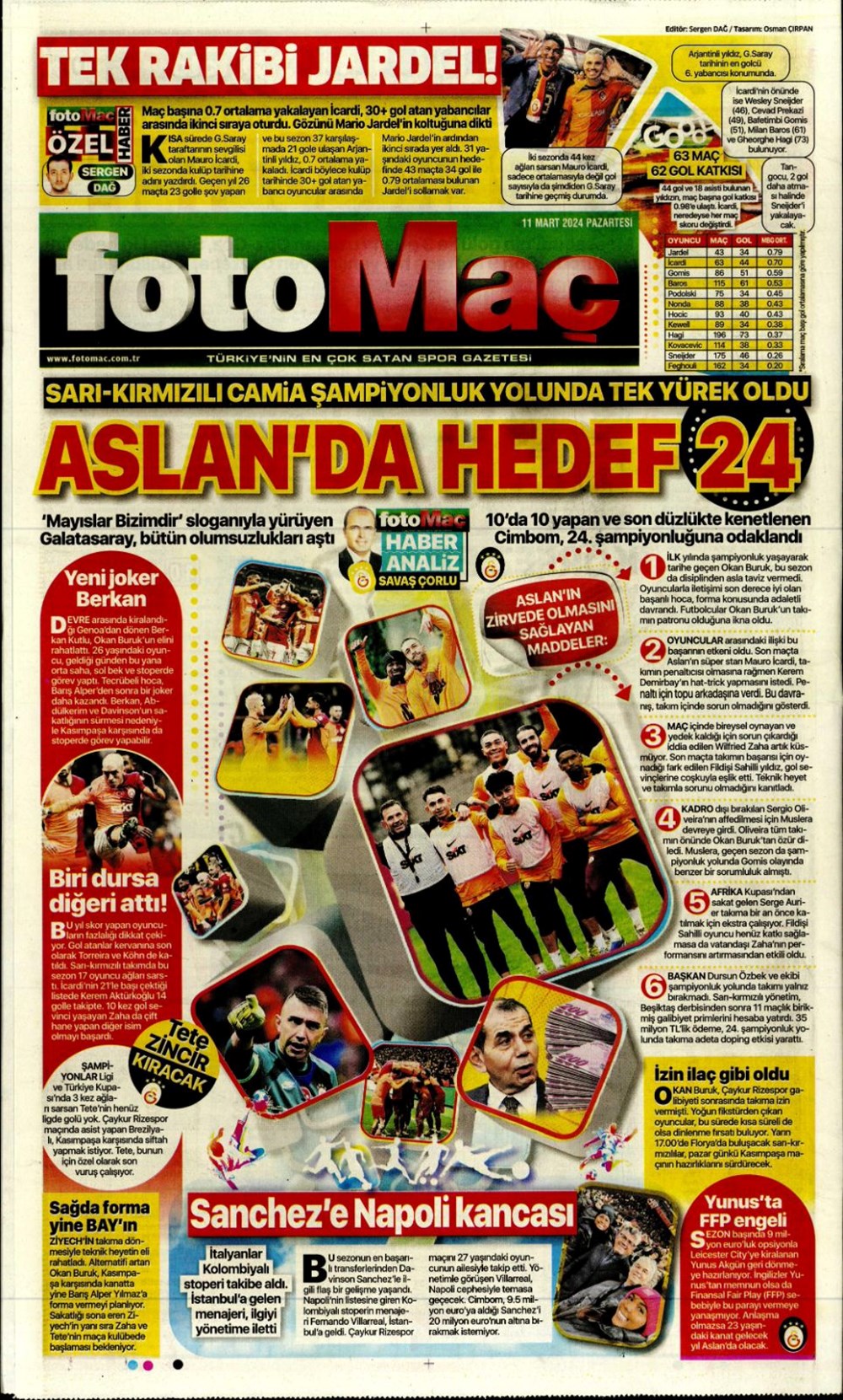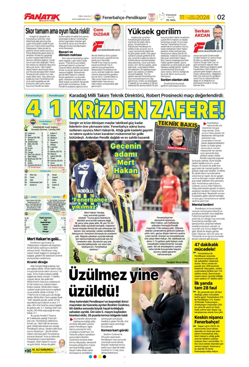 Fenerbahçe hata istemiyor (10 Mart 2024 spor manşetleri)