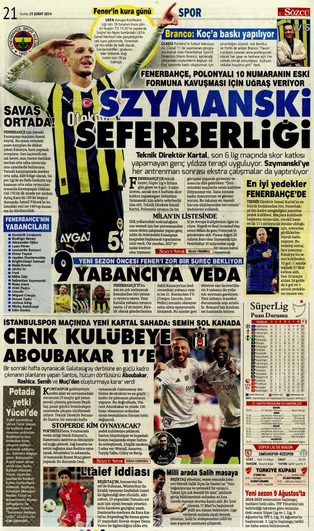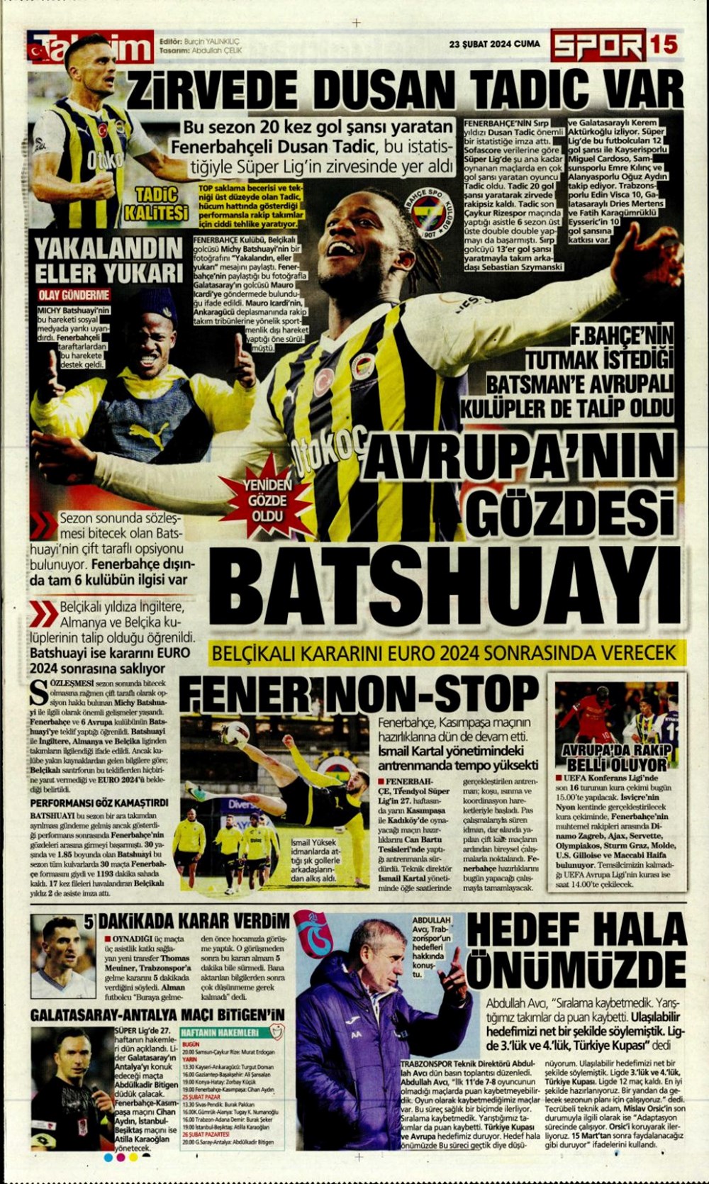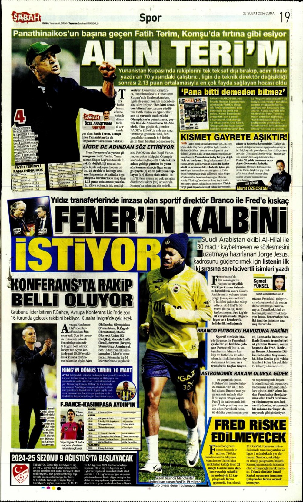 “Fenerbahçe’de Roberto Firmino bombası” (9 Şubat 2025 spor manşetleri)