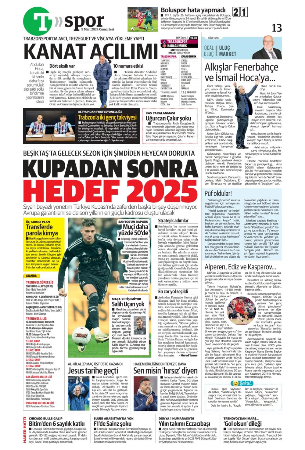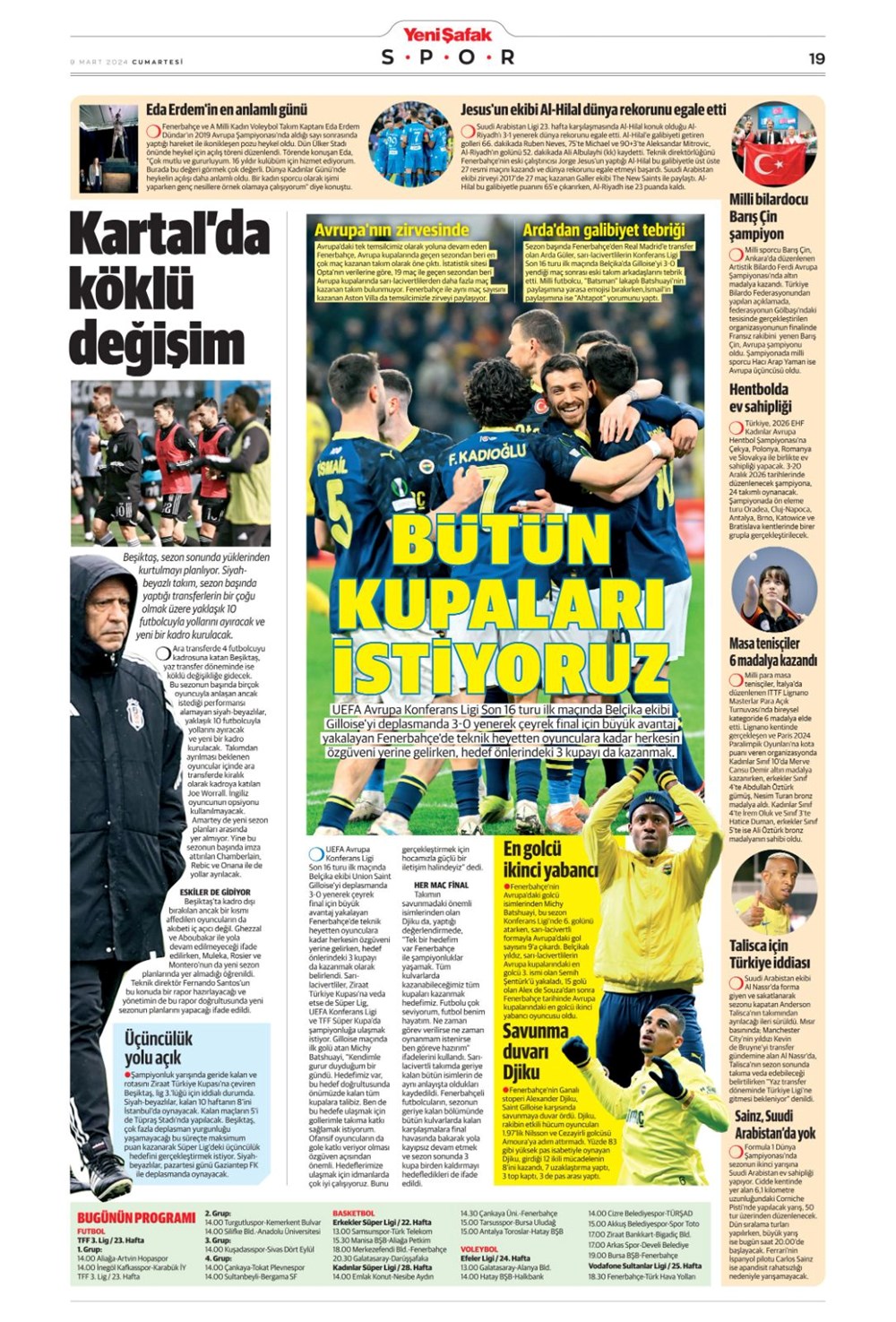 “Fenerbahçe’de Roberto Firmino bombası” (9 Şubat 2025 spor manşetleri)