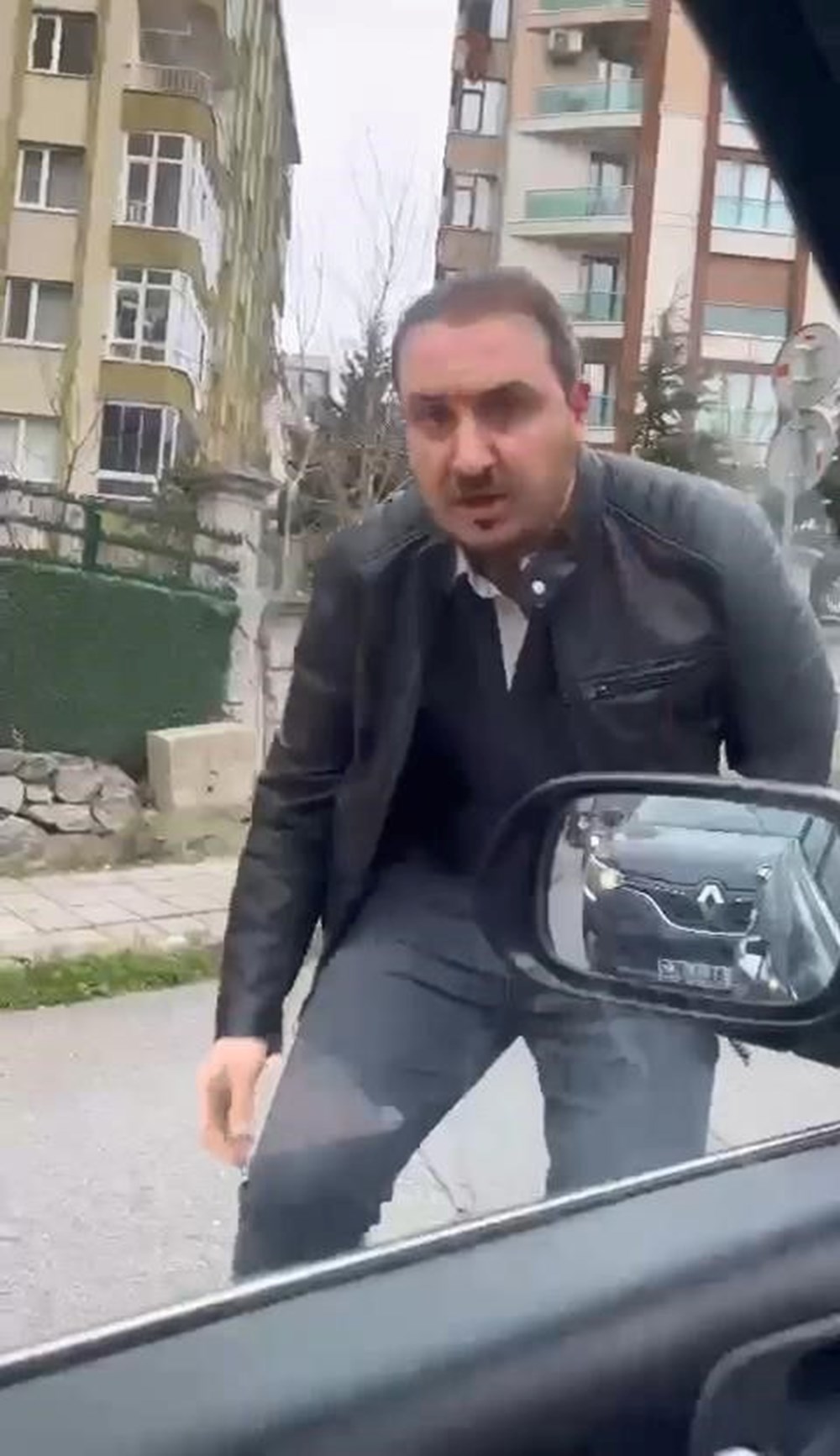 Yol isteyen şoför, 500-600 metre sonra kendisine yol vermediğini sav ettiği aracın önünü kesti ve aşağı indi.