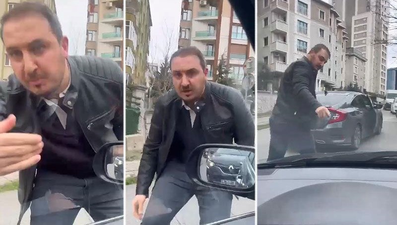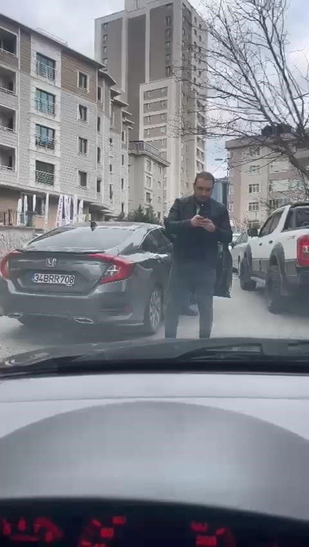 Otomobildeki şoför ise araçtan inmeyeceğini söyleyerek cep telefonuyla o anları görüntülemeye başladı.