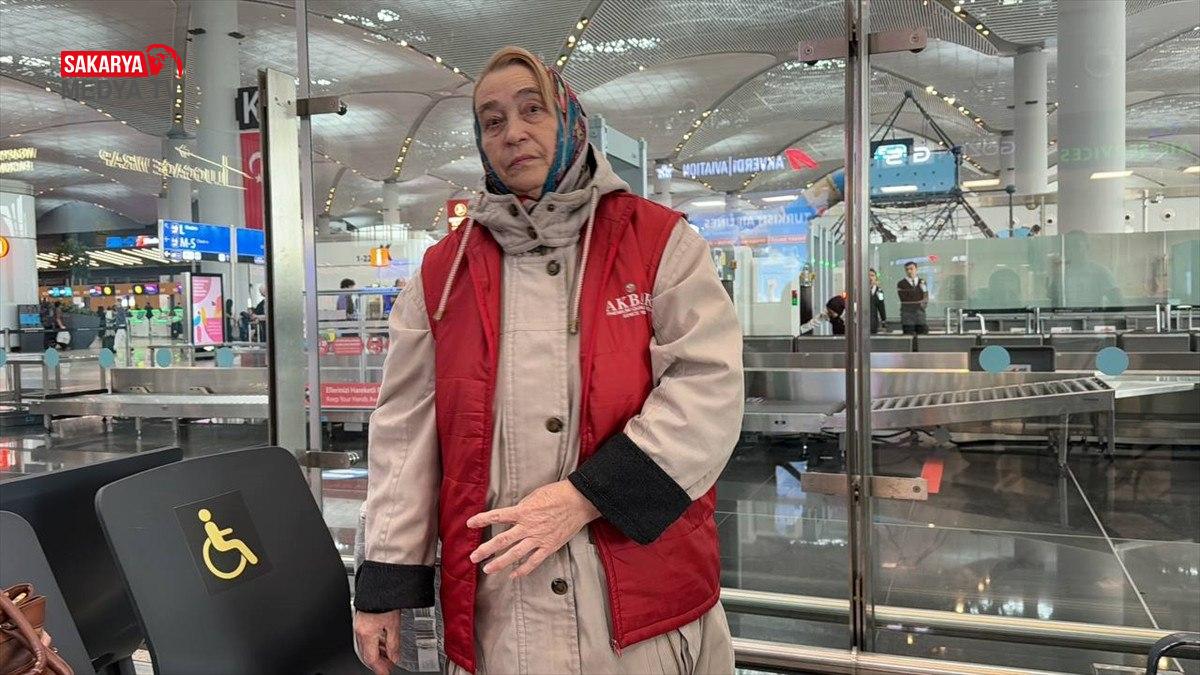 İstanbul Havalimanı çalışanlarının yardımcı olduğu, giden yolcu katındaki kontuar bölgesinde kalan Bikmukhametova, valizini, çantasını ve öteki eşyasını yanından ayırmıyor.