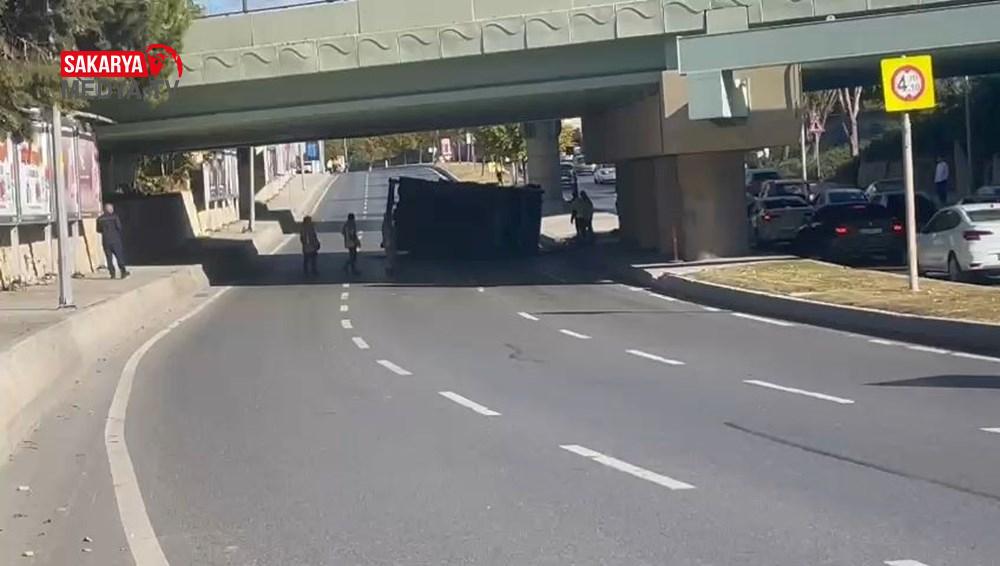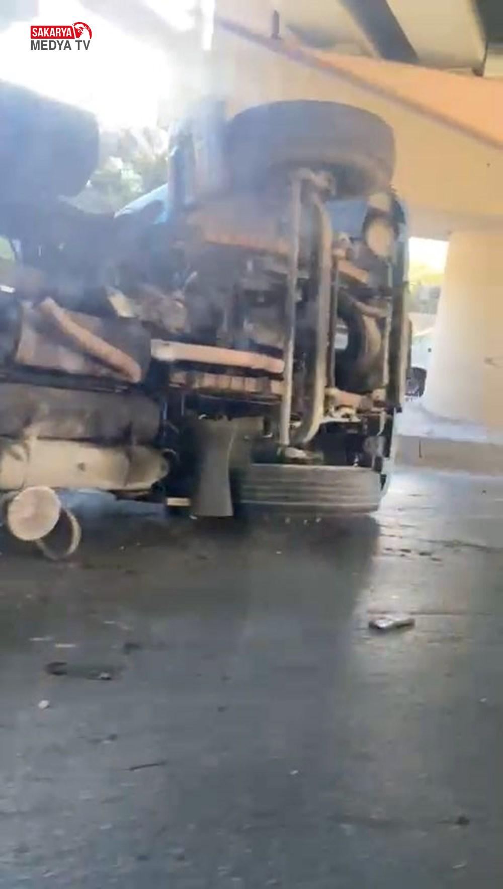 Çarpma sonucu devrilen araç için çok sayıda ekip sevk edildi.