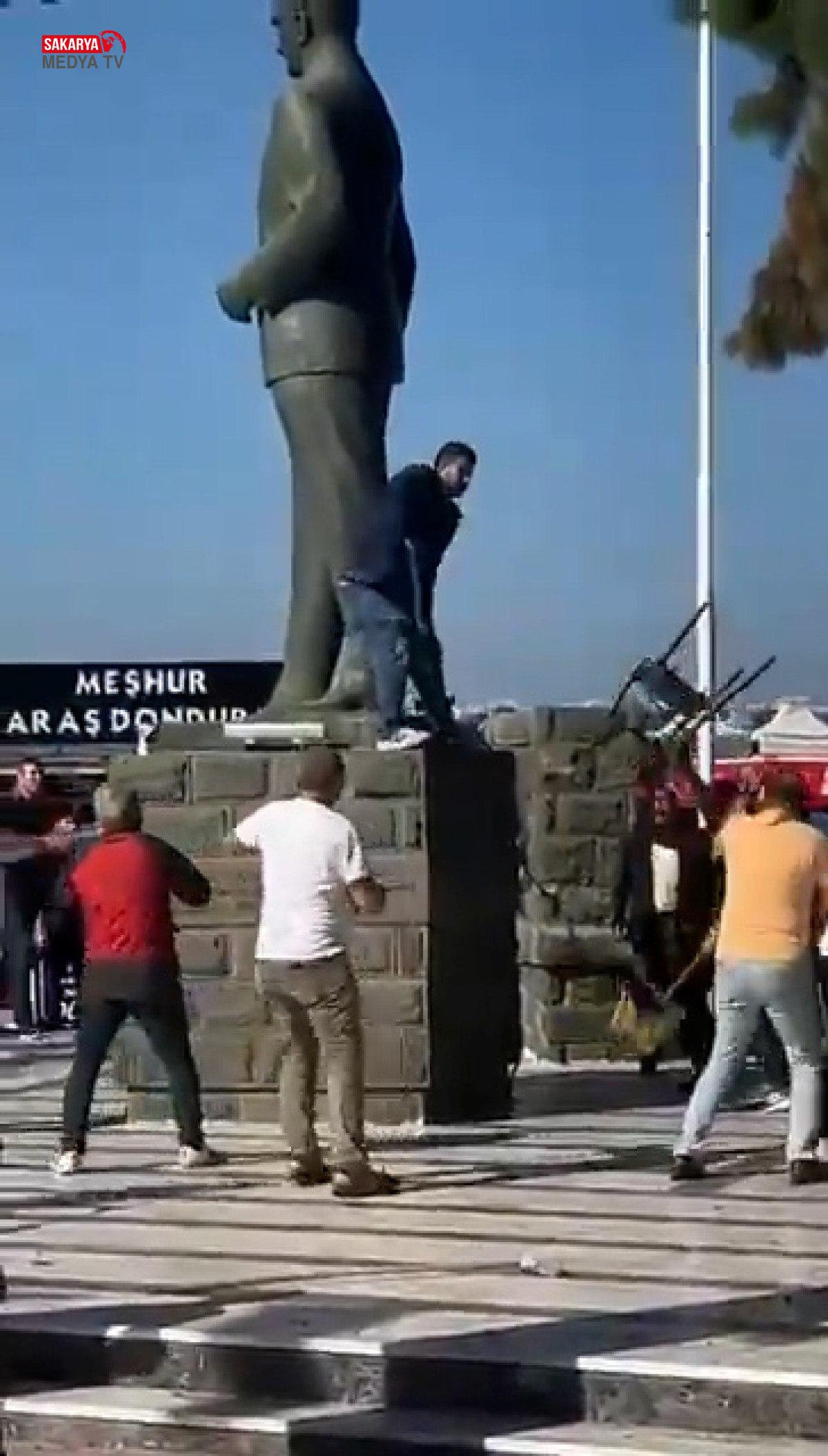 Şahıs çıktığı Atatürk anıtının üzerinden indirildikten sonra dövüldü. Etkisiz hale getirilen şahıs daha sonra polis ekiplerine teslim edildi.
