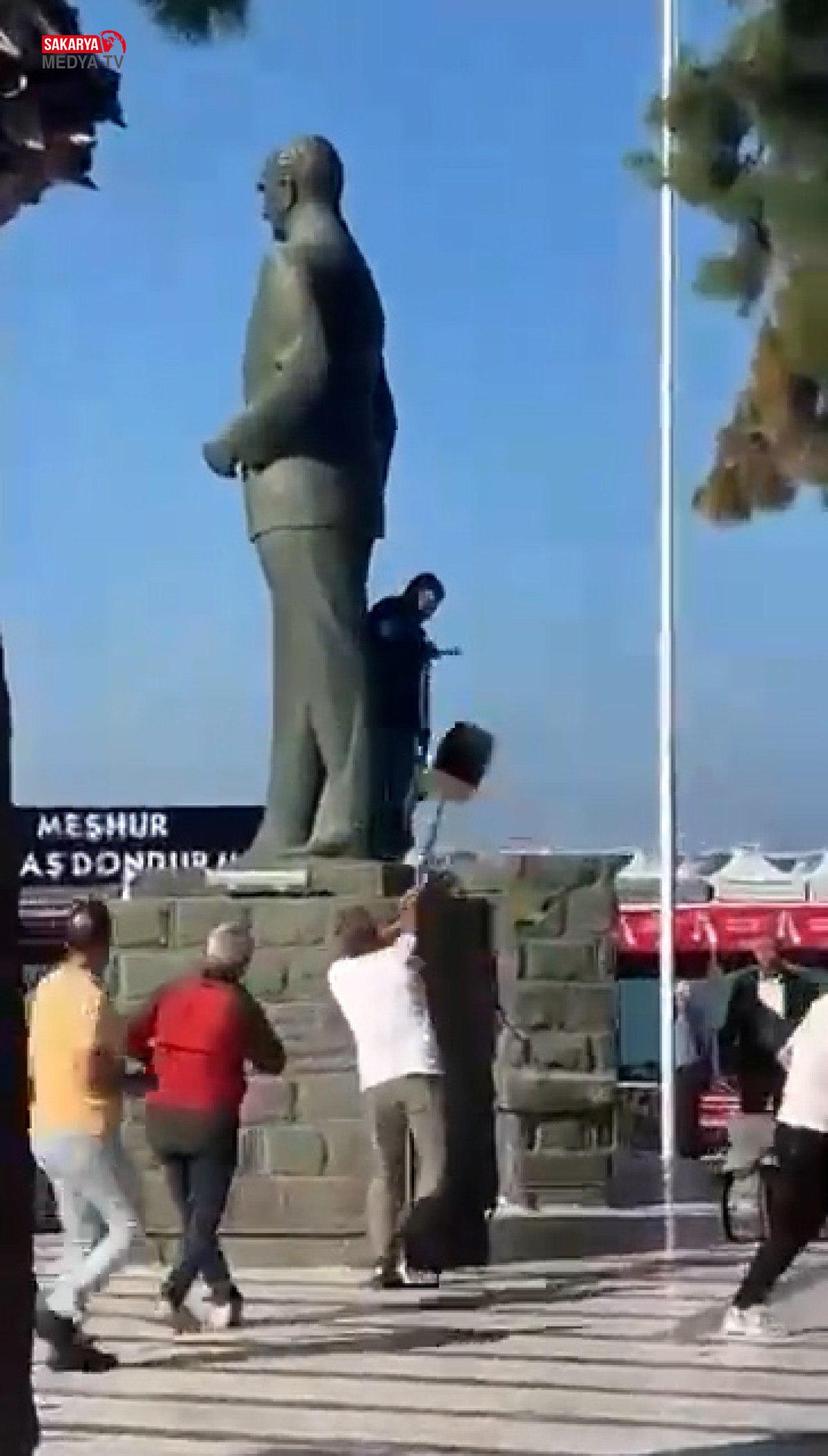 ATATÜRK BÜSTÜNE BALYOZLA SALDIRDI: VATANDAŞLAR DEVREYE GİRDİ
