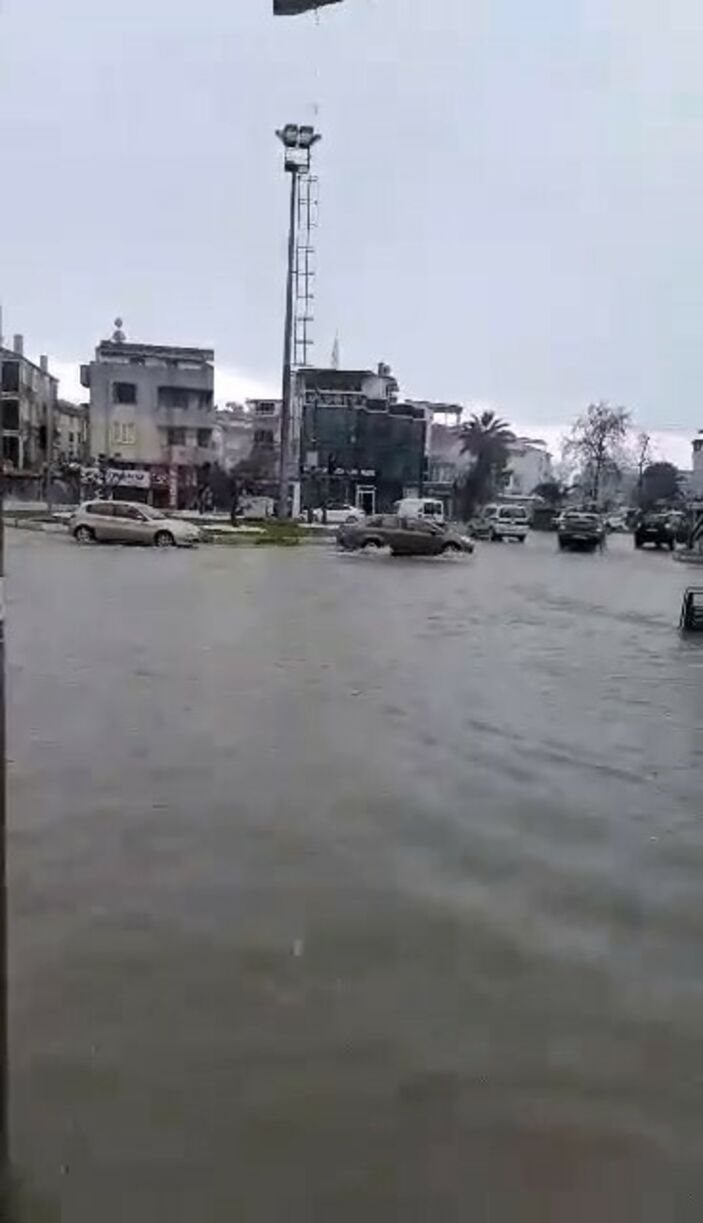 Araç sürücüleri suda ilerlemekte zorluk çekerken, bazı ev ve iş yerlerini su bastı.