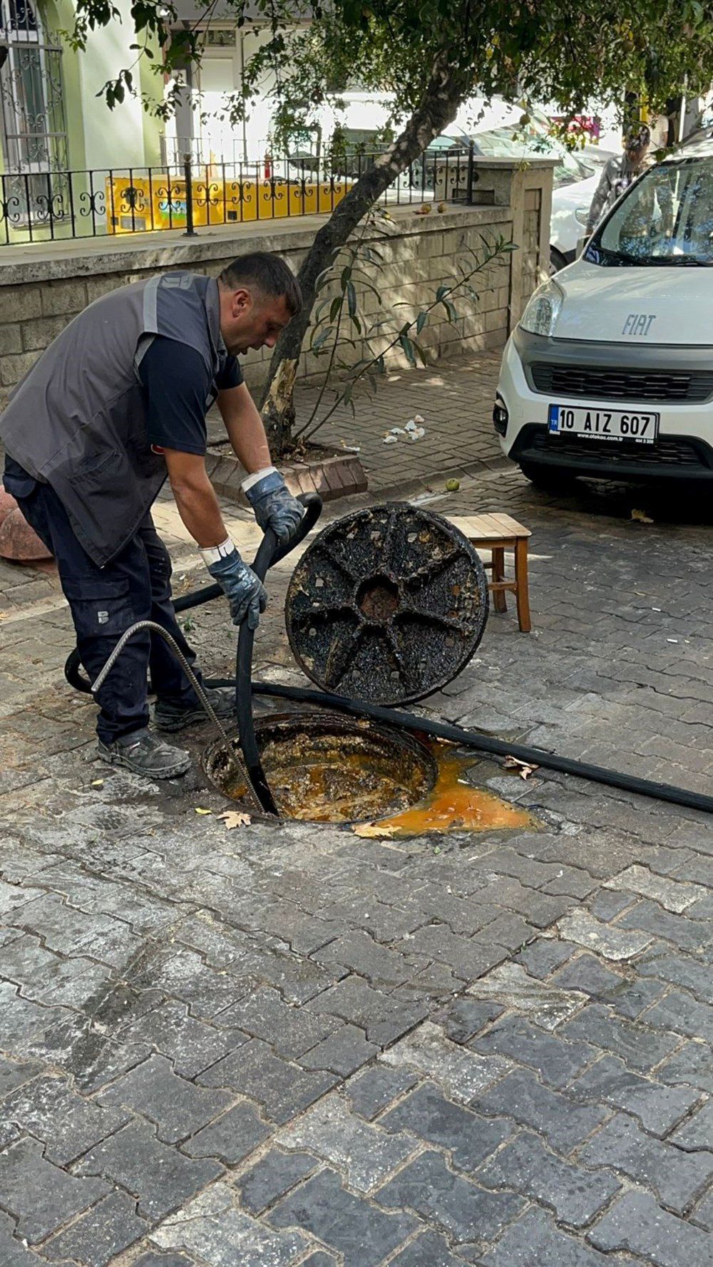 Balıkesir Su ve Kanalizasyon İdaresi (BASKİ) ekipleri sık sık bölgeye gelerek tıkanıklığı gidermek için çalışıyor.