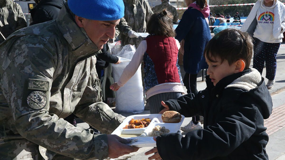 Kahraman Mehmetçik deprem bölgesinde sıcak yemek dağıtımını sürdürüyor