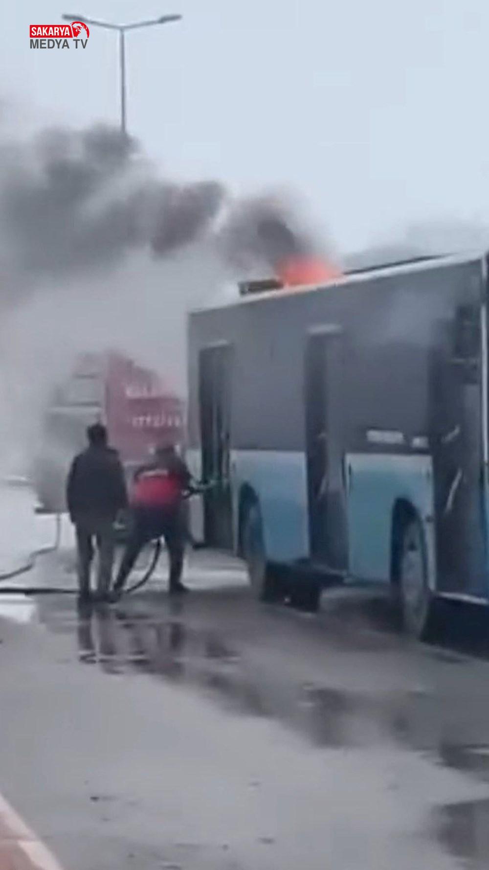 O anlar cep telefonu kamerasıyla görüntülenirken, otobüs kullanılamaz hale geldi.