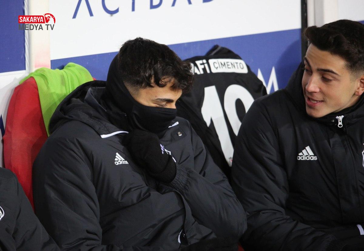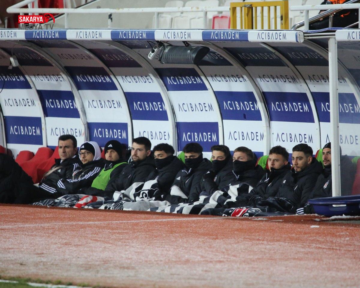 Yedek kulübesinde oturan Beşiktaşlı futbolcular battaniyelere sarılarak soğuktan korundu.