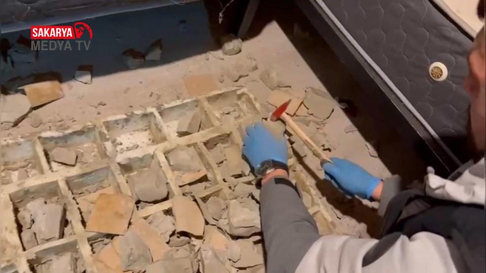 Polis, beton kalıpları tek tek kırdı. Aramalar sırasında polisin dikkatini konutta bulunan beton kalıpları çekti. Çekiç yardımıyla kalıpları tek tek kıran polis, içerisine gizlenmiş toplamda 288 adet ekstazi hap ele geçirdi.