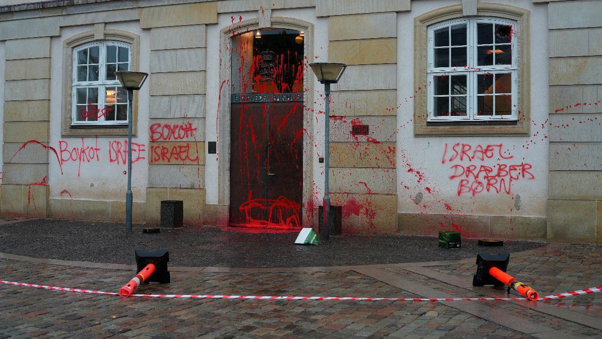 Danimarka’da Filistin destekçileri, Dışişleri Bakanlığı binasını boyadı