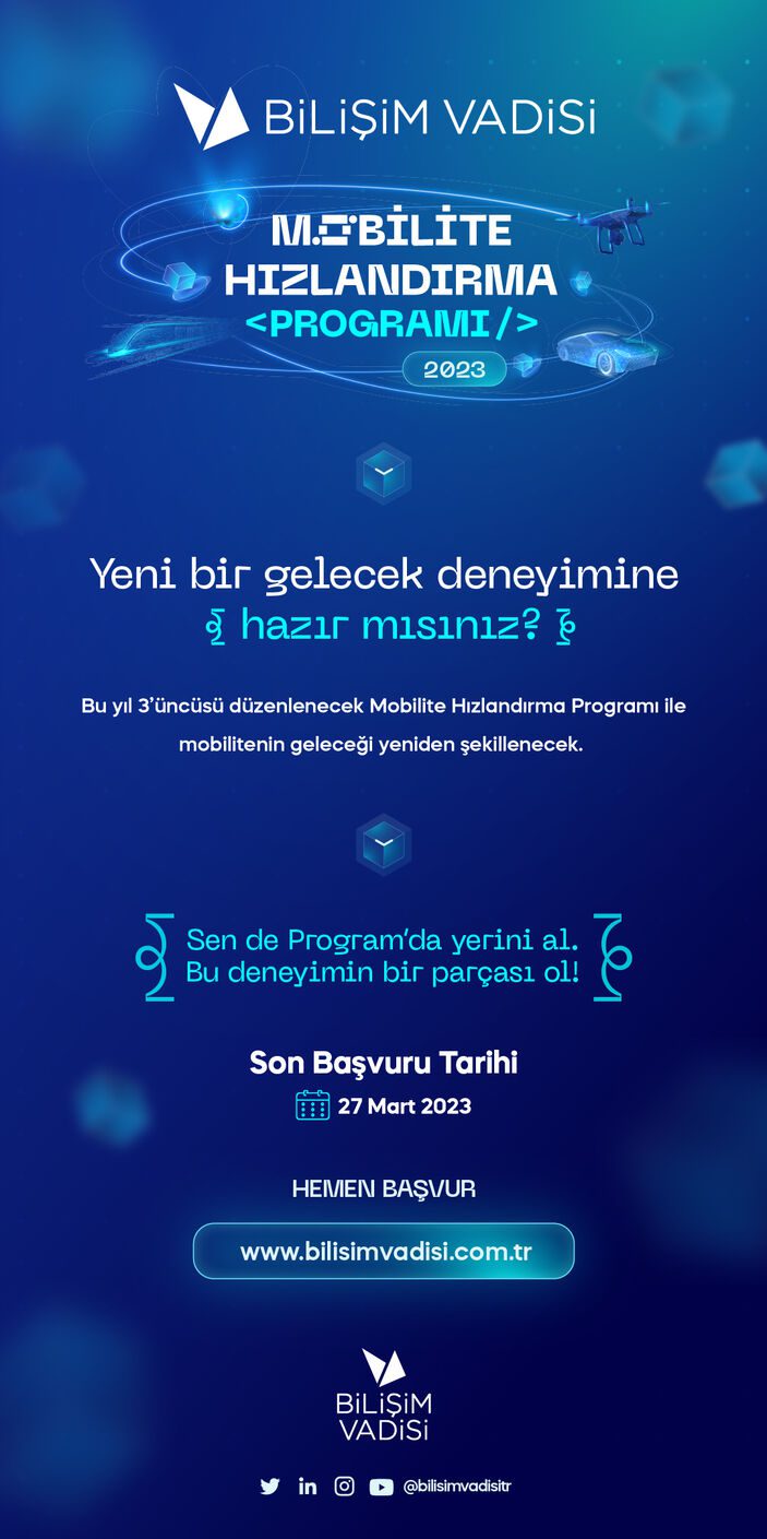 Mobilite sektörünün gelişimine önemli ölçüde katkı sunmaya devam eden ve sektörün odak noktası haline gelen Bilişim Vadisi; bu yıl 3’üncüsünü gerçekleştireceği “Mobilite Hızlandırma Programı” ile girişimcilere kapısını bir kez daha açıyor.