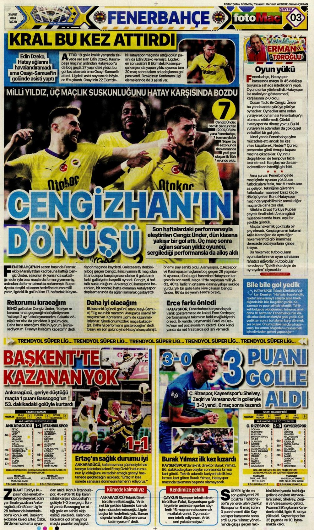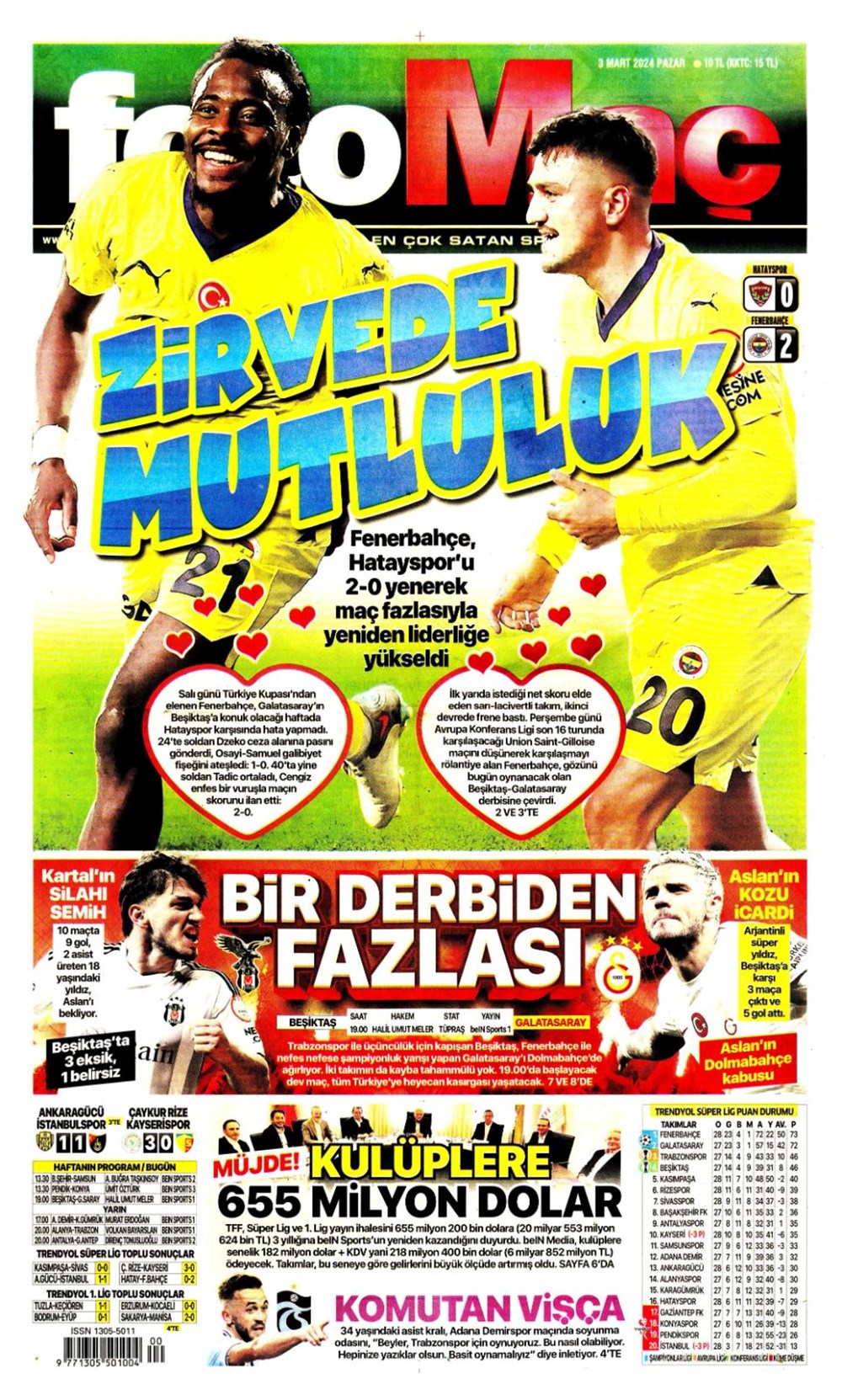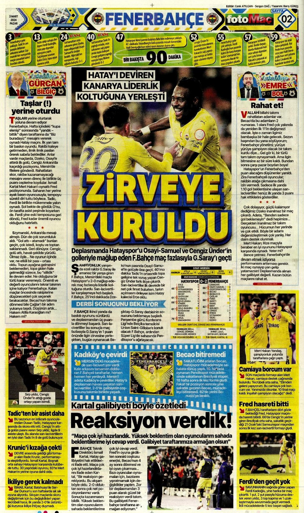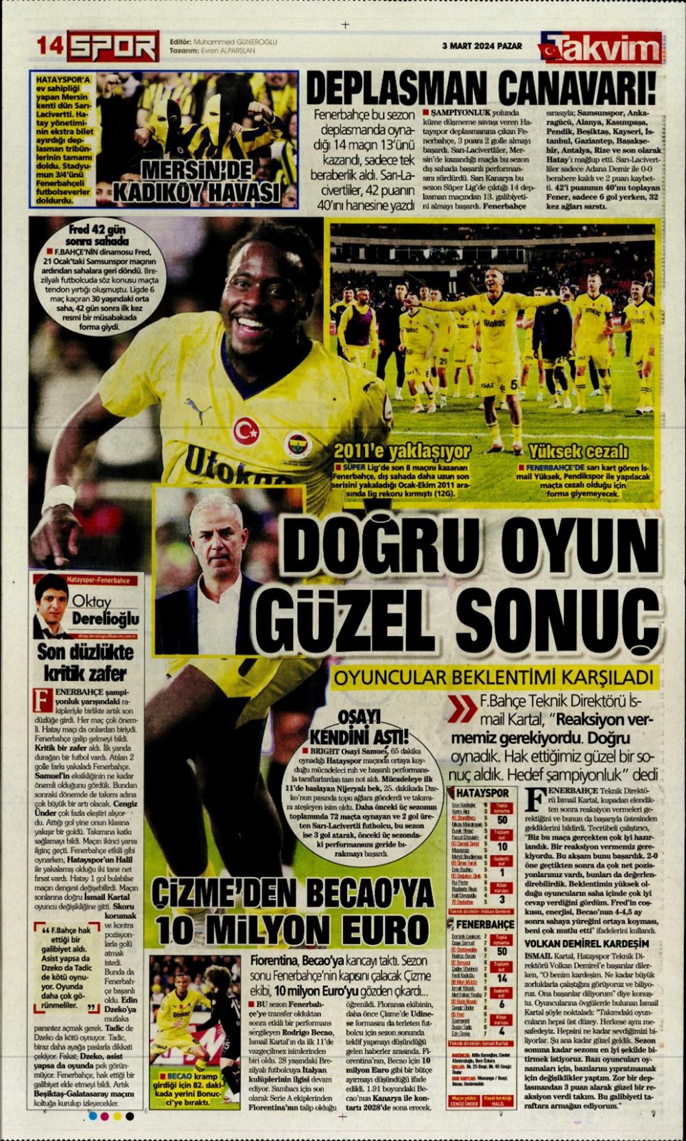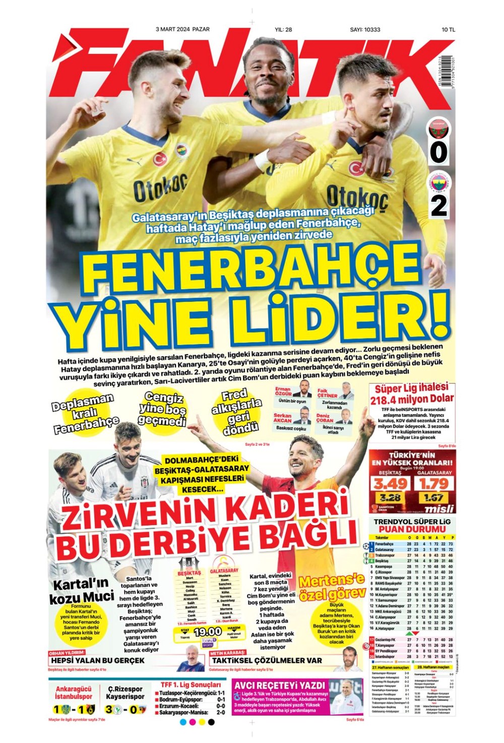 “Fenerbahçe’de Roberto Firmino bombası” (9 Şubat 2025 spor manşetleri)