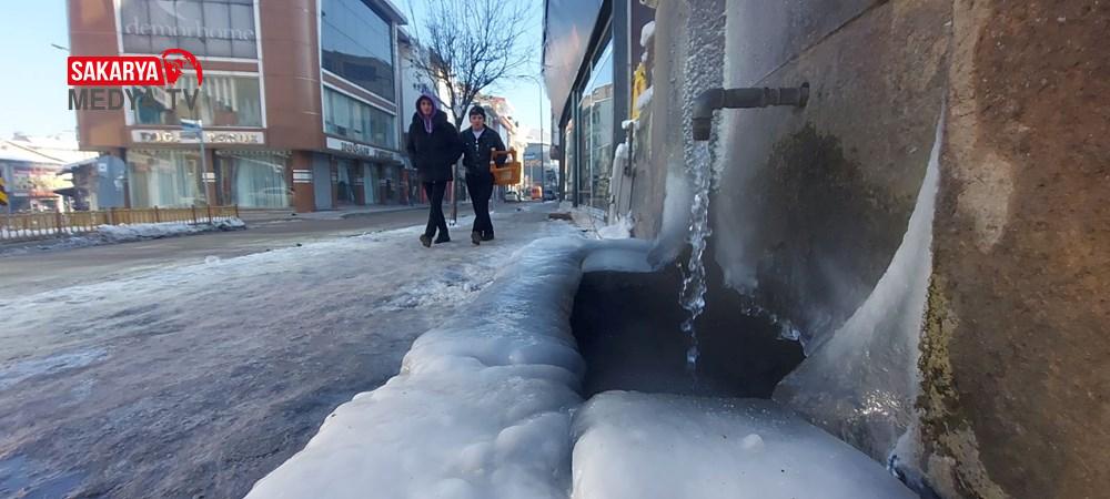 Kent merkezinde buzlanma ve dondan ötürü vakit zaman kazalar olurken, çatılardan sarkan buzların uzunluğu 1,5-2 metreye kadar ulaşıyor.