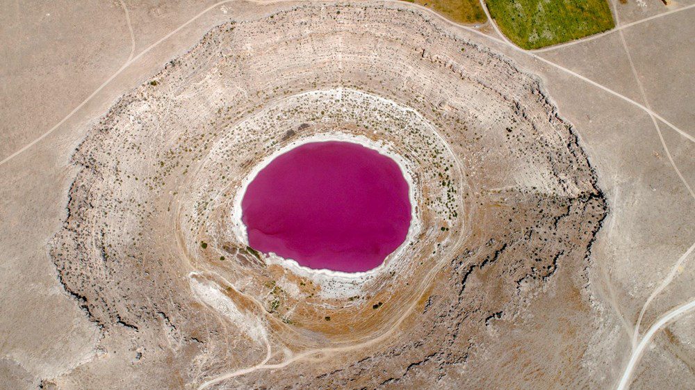 Karatay ilçesindeki Meyil Obruk Gölü’nde artan sıcaklık ve azalan su düzeyi nedeniyle dunaliella salina mikroorganizmaları çoğalırken göl de pembe rengine bürünüyor. Karstik yapısı ve yaz mevsimine yanlışsız pembe rengini alan göl, tıpkı vakitte görsel şölen oluşturuyor. Bozkırın ortasında, 650 metre çapında, 75 metre derinliğinde ve 1970 yılı prestijiyle 31 metre su derinliği olan Meyil Obruk Gölü, büsbütün kurudu.