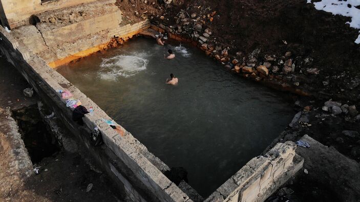 Geçen yıl bu mevsimlere göre 20-30 santimetrelik su artışı olduğunu görüyoruz. Köylülerin çocuklar boğulmasın diye kaplıca havuzundaki geçiş hattını delmeden önce suyun 30 santimetreye kadar yükseldiği görülmektedir.