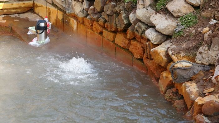 Depremden 2 gün sonra geldiğimde kaplıcanın suyu artmıştı. Yaklaşık 30 santimetre bir artış oldu. Önceki hali ve şimdiki hali arasında bayağı bir fark var.