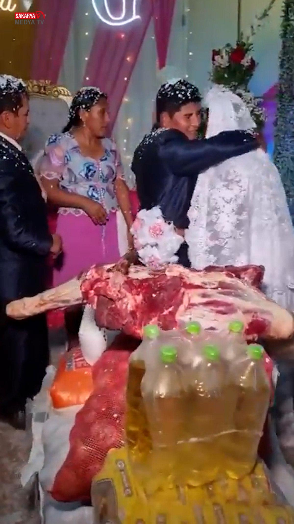 Yemeklik yağdan, kuru bakliyata kadar her şey gelin ve damada ikram edildi. İçlerinde bir armağan var ki en çok dikkat çeken oydu.