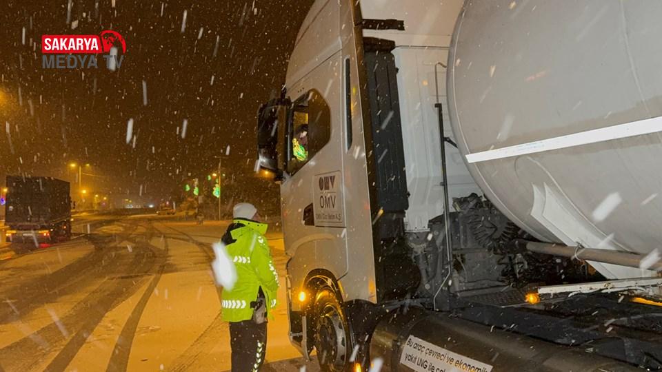 Kış lastikleri olmayan araçlar Bolu Dağı’na gönderilmezken, kış lastiği olanlar da denetimli ilerlemeleri konusunda uyarıldı.
