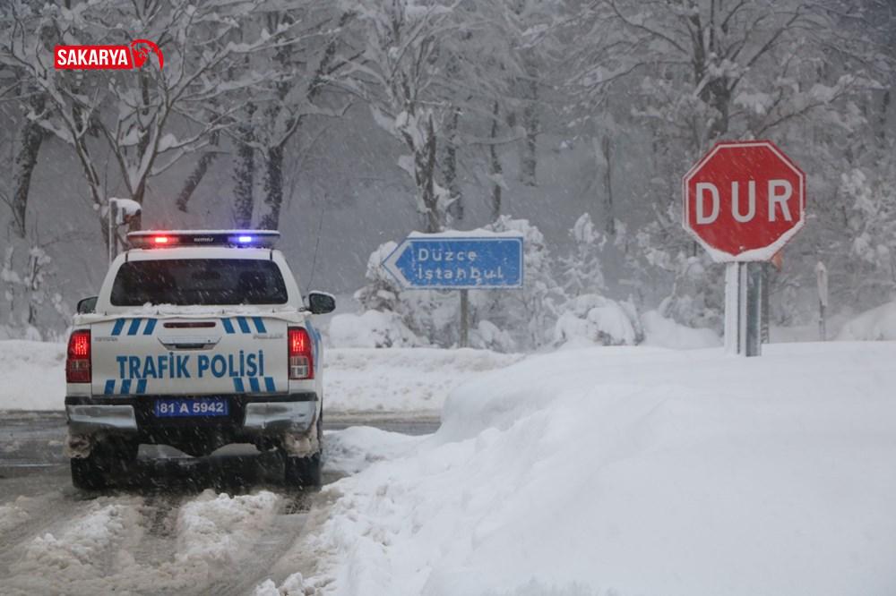 Ekipler, şoförleri kar lastiği olmadan yola çıkmamaları konusunda uyarıyor.
