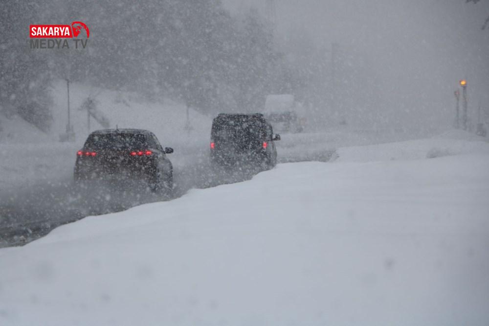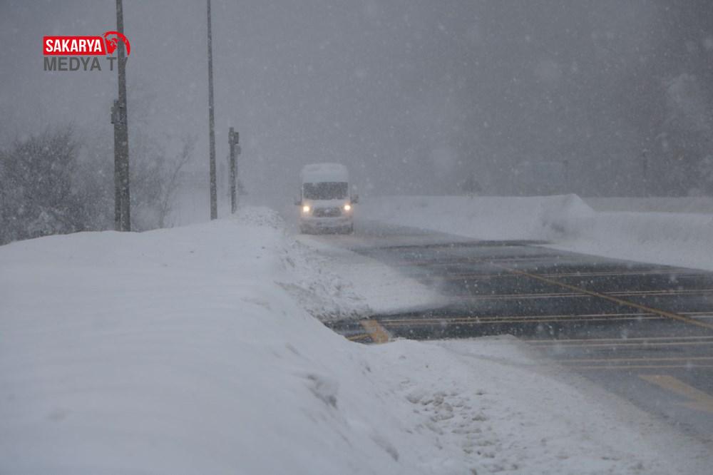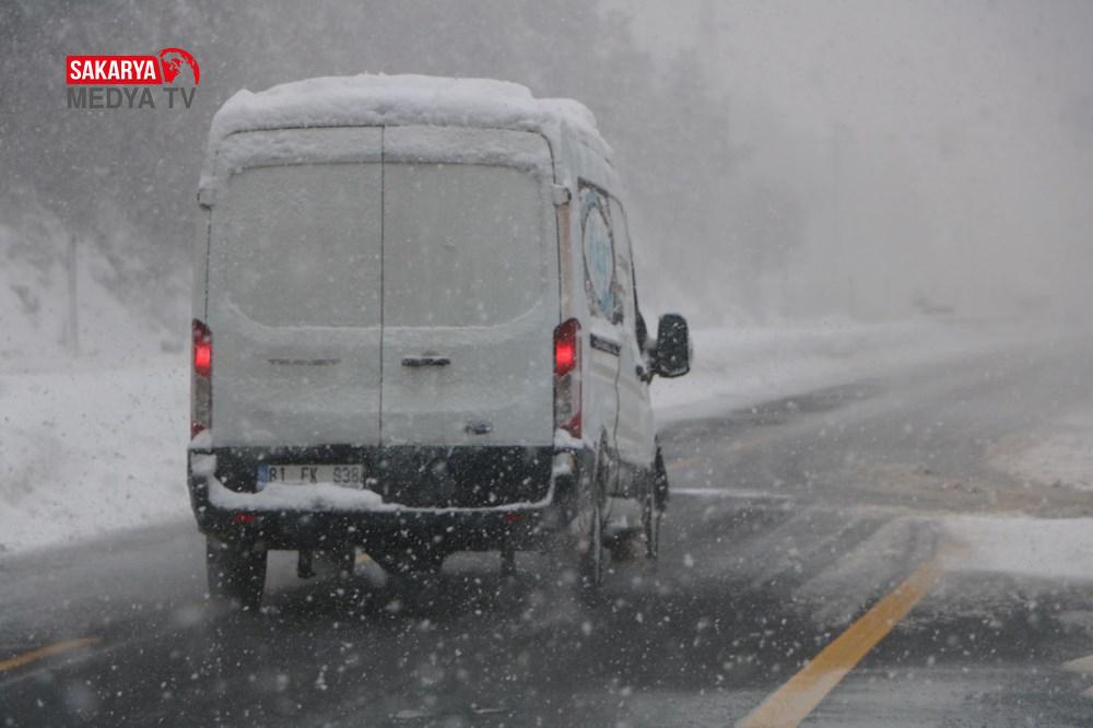 Yolda kar yağışına karşın ulaşım yavaş da olsa sağlanıyor.