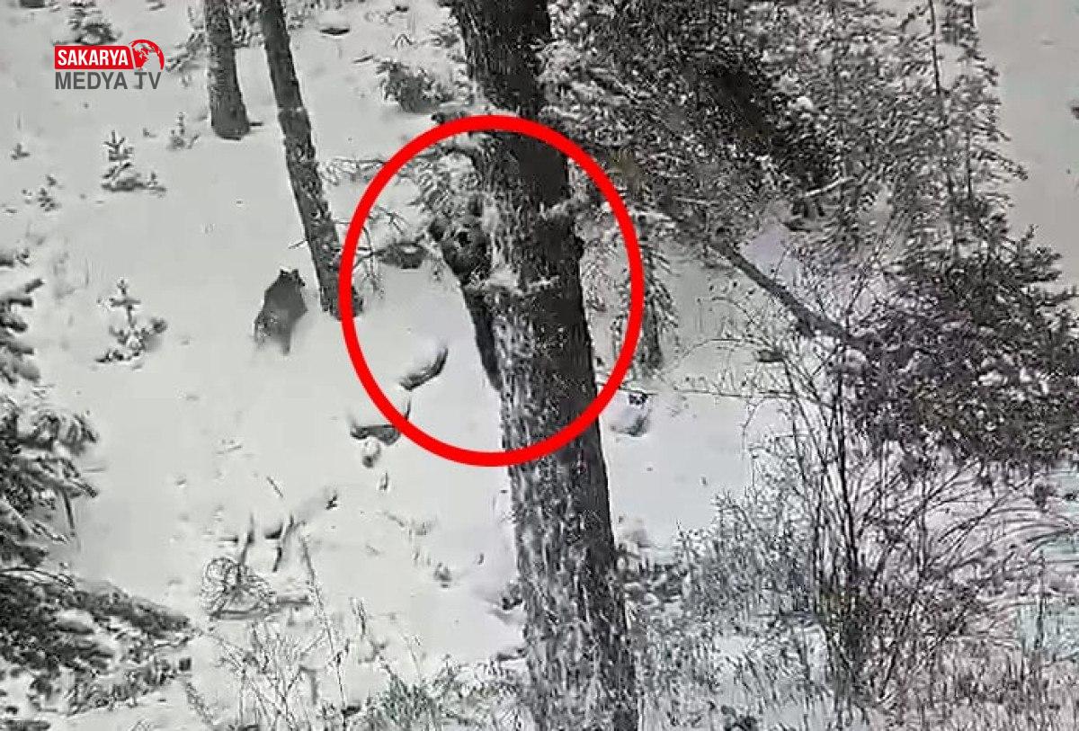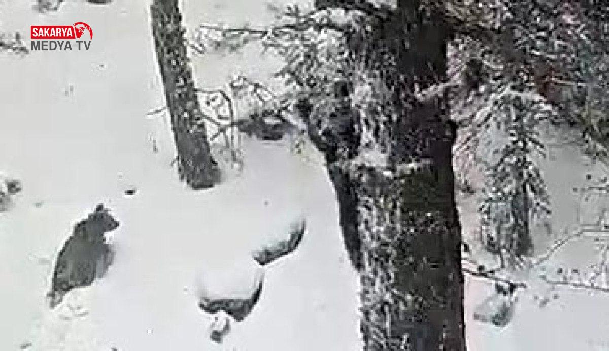 Kıbrıscık ilçesinde, karla örtülü ormanın huzur dolu sessizliğinde, kış uykusuna yatmayı tercih etmeyen bir anne bozayı ve sevimli yavrusu, cep telefonu kamerasıyla görüntülendi.