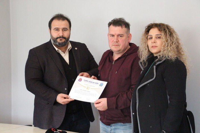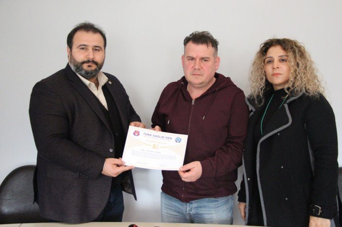 Bayram Ceran’a örnek davranışı dolayısıyla Türk Sağlık Sen Bolu Şube Başkanı Furkan Özübek tarafından teşekkür belgesi verdi.