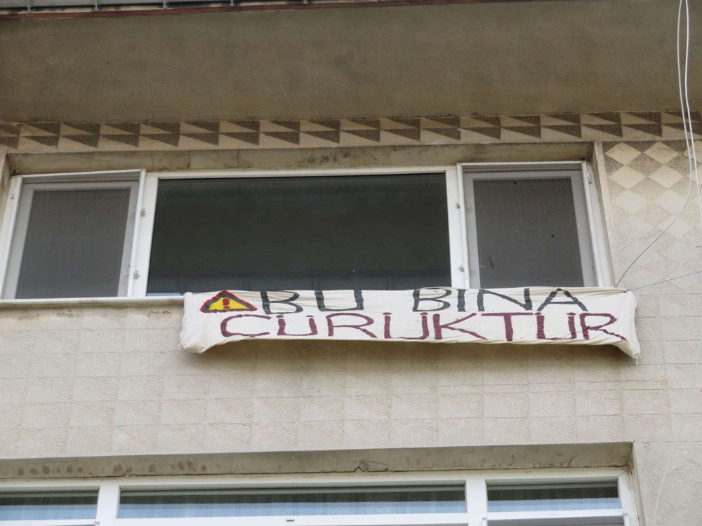 Kadıköy Rasimpaşa Mahallesi’nde 5 katlı apartmanın en üst katında kiracı olarak oturan Canan Coşkun, 55 yıllık binanın kolonları ve duvarlarında çatlak olduğunu iddia ederek, daireyi boşalttı. Coşkun evden ayrılmadan önce binanın dış cephesine ‘Bu bina çürüktür’ yazılı pankart astı. Coşkun sosyal medya hesabından da bir açıklama yaptı. Mesajında “Kadıköy Yeldeğirmeni’nde 55+ yaşındaki bir binada kiracıydım.