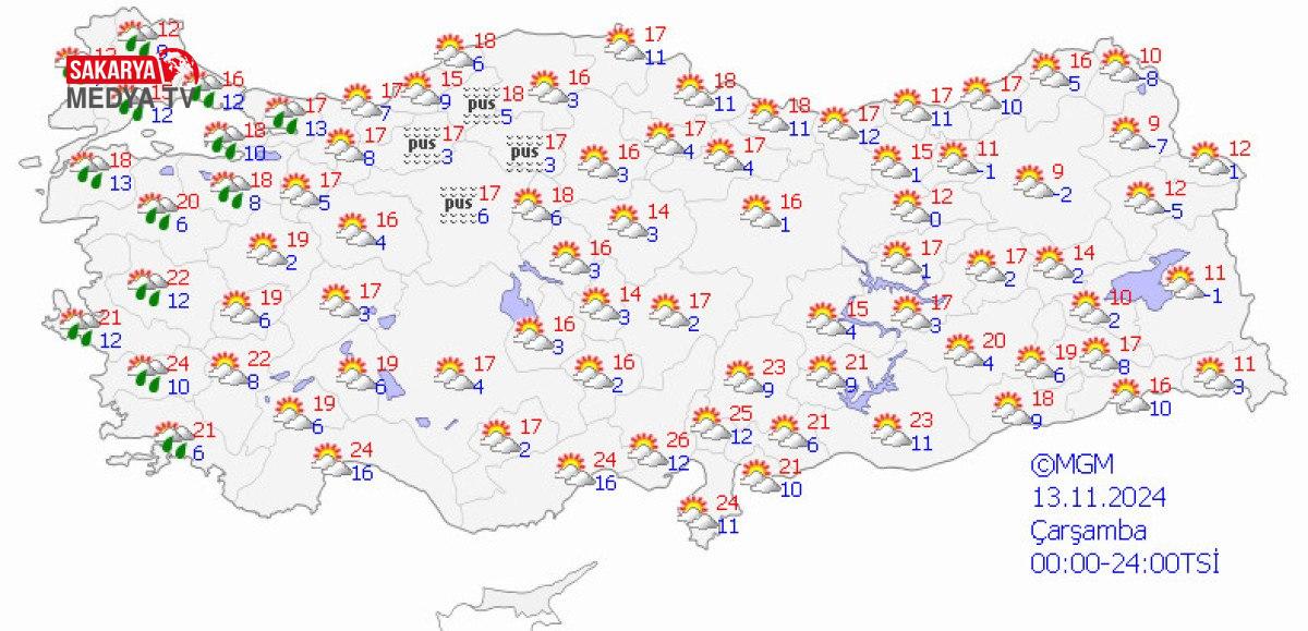 Ayrıca, iç ve doğu kesimlerde gece ve sabah saatlerinde pus ve yer yer sis oluşma ihtimali var.