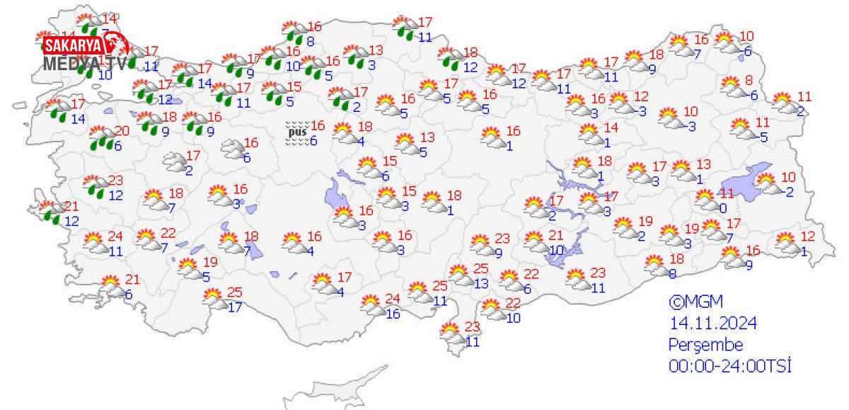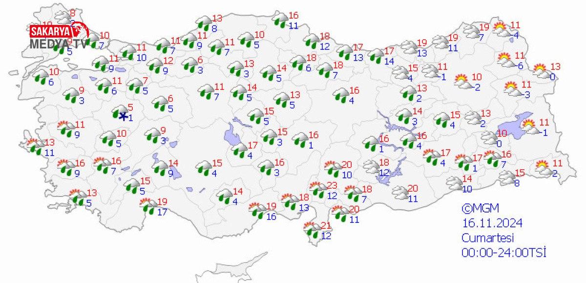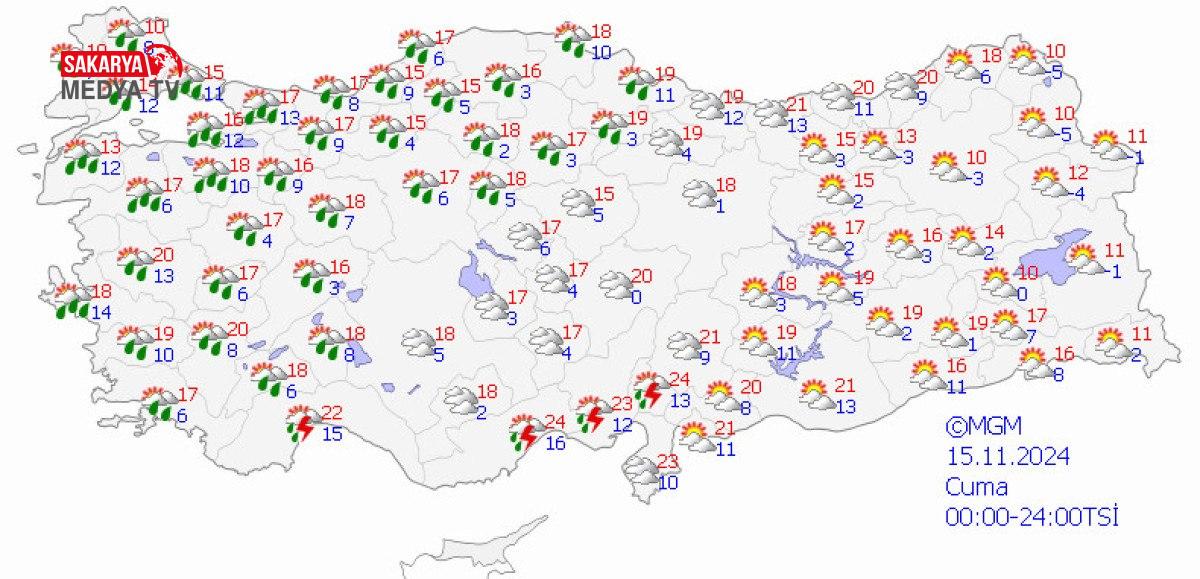 Meteoroloji Genel Müdürlüğü’nün son tahminlerine göre, ülkemizin batı bölgelerinde yoğun bulutlanma hakim olurken, Marmara’nın batısı ile Kıyı Ege’de sağanak ve yer yer gök gürültülü sağanak yağışlar bekleniyor.